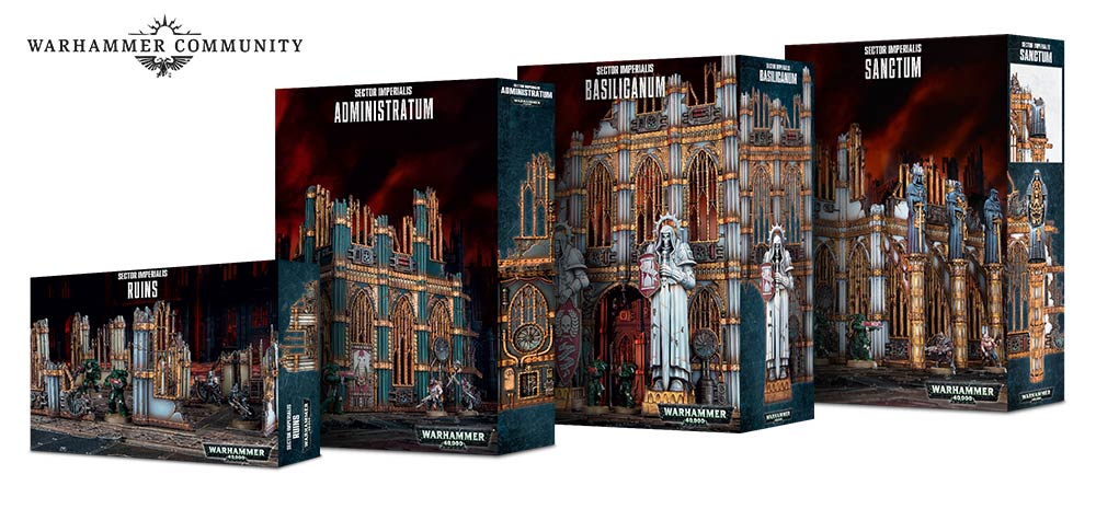 Сектор Империалис состоит из множества зданий, подавляющее большинство которых выполнено в одном классическом архитектурном стиле, который Империум перенял – обширной и мрачной готике. В плотной застройке типичного Сектора Империалис вы всегда найдете следующие здания: администратумы, базиликанумы, санктумы и мануфакторумы.