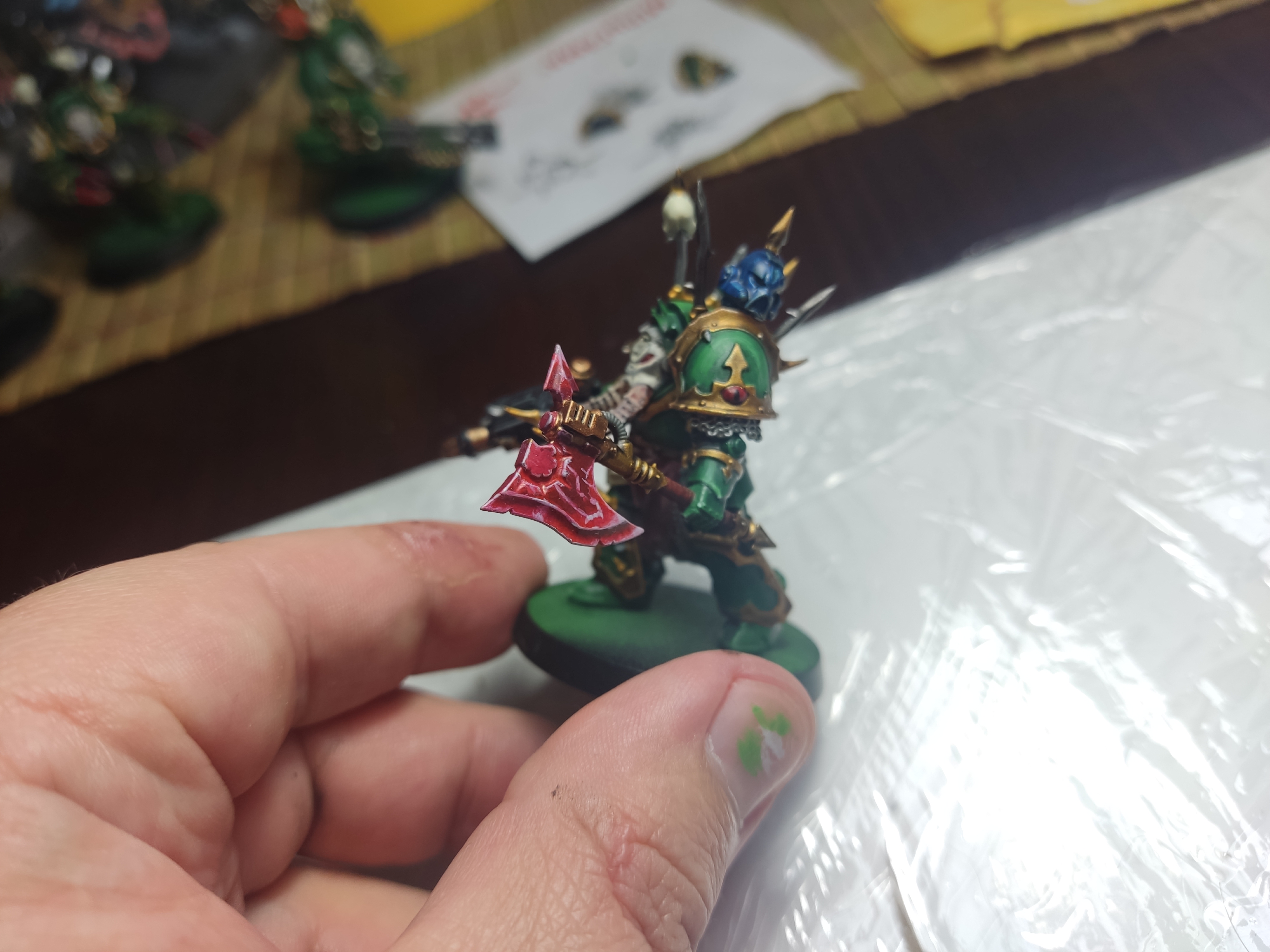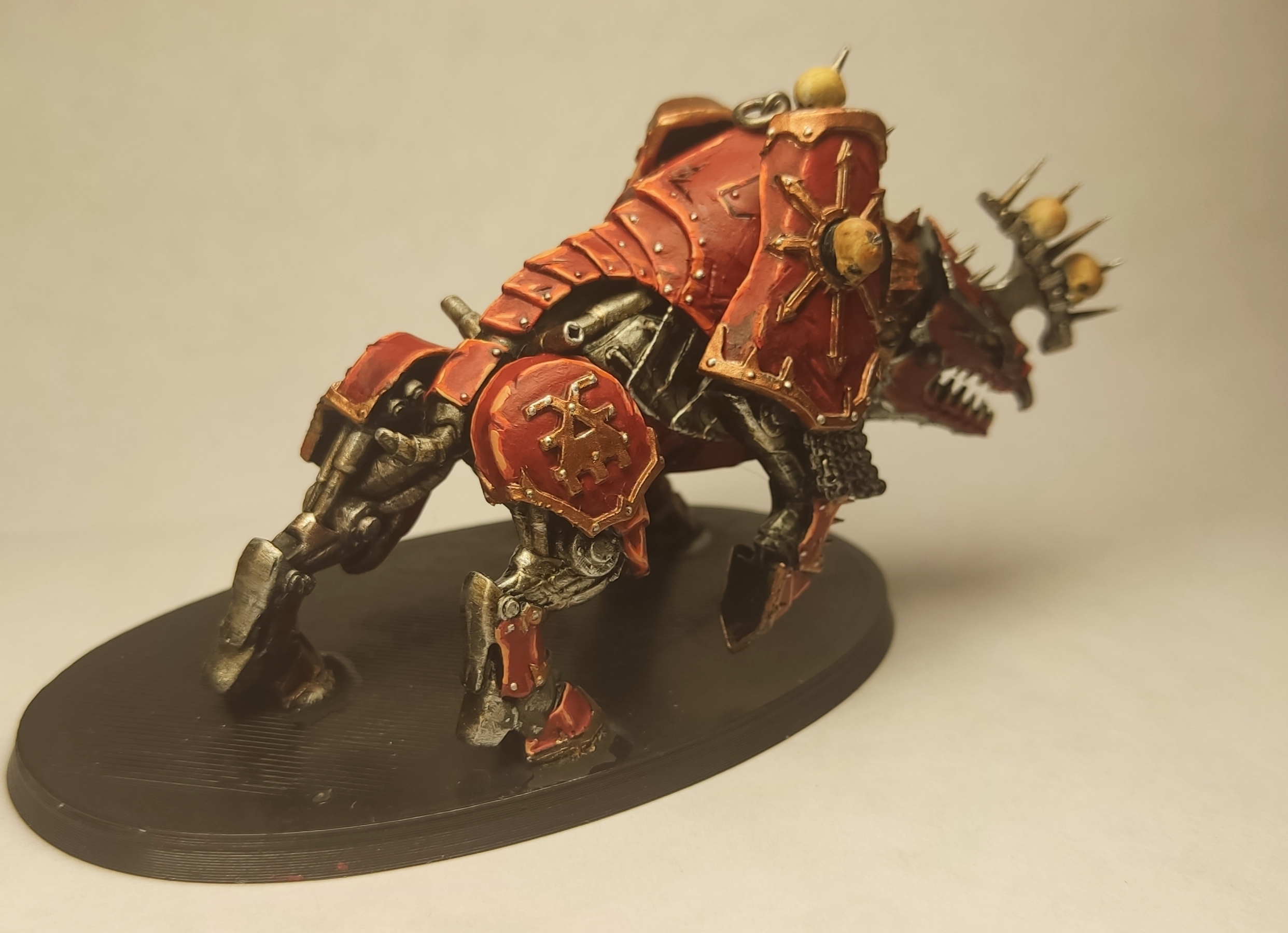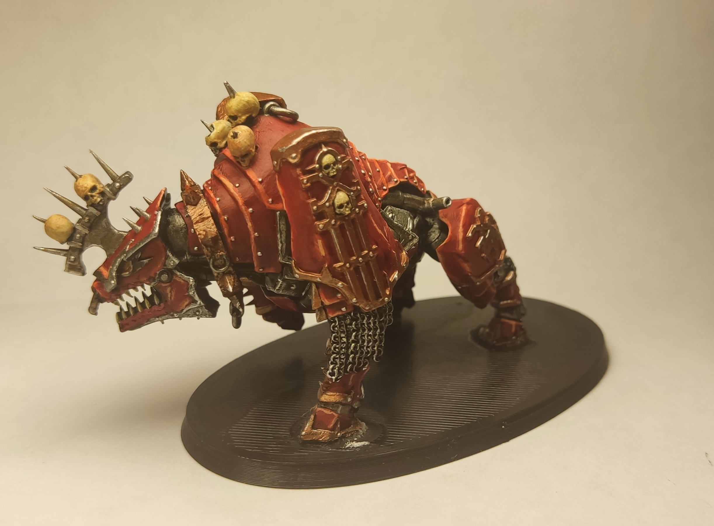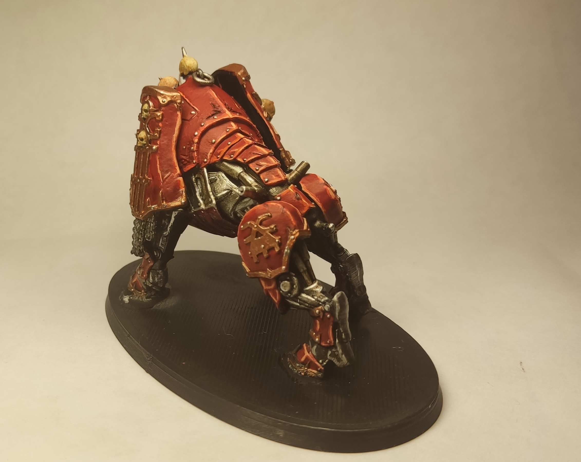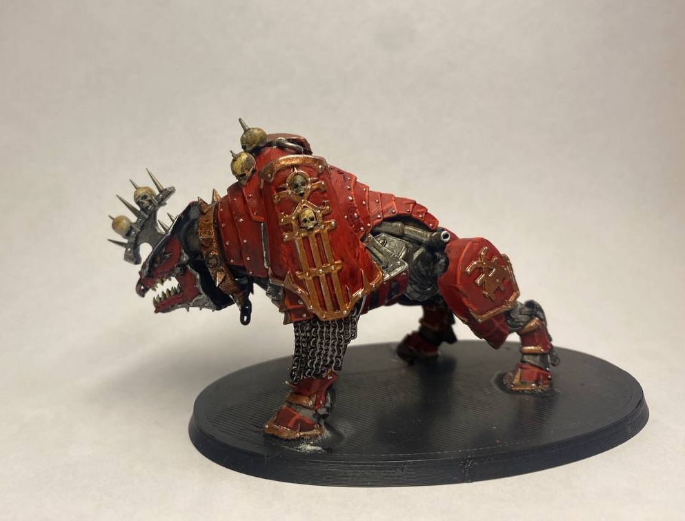 >>1064750 • мало высветлений на красном • неаккуратные грязные черепа • почему-то стальной декор на башке, когда везде угодная Кхорну медь • невнятные проливки на туше/ногах из стали