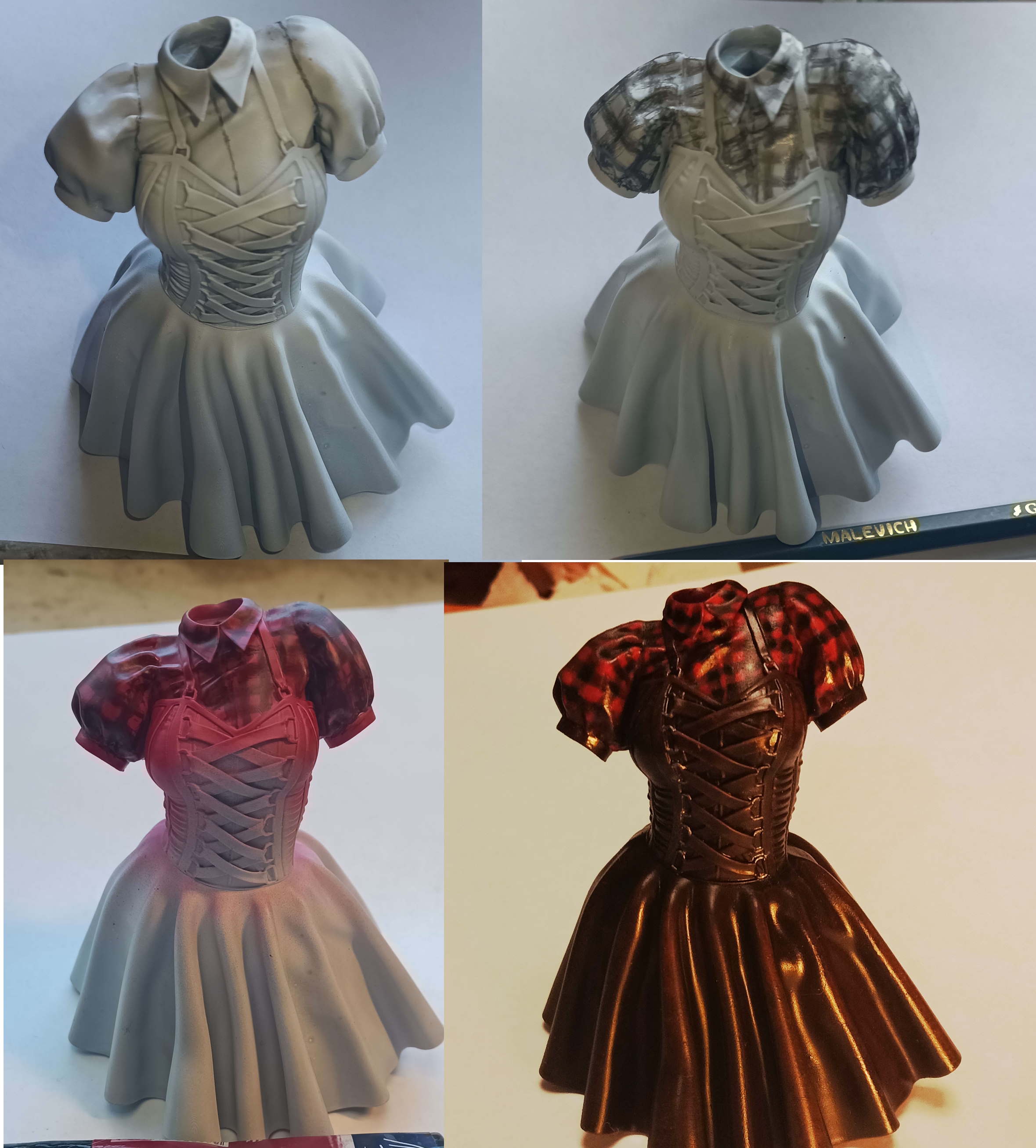 >>1065884 >Можно бы по граням ещё высветлить Я изначально бант тоже в клетку мазал, но там такая лютая порнография получилась и меня настолько выбесило что я просто на плохуй дунул лишь бы не голой смола была. Я поэтому и удивлён что он понравился, чисто на отъебись была работа. >Ммммм глянец. Матовым лаком бы покрыть, это же не кожаное платье? Я пытался по японским канонам мазать, они всегда в сатин всё задувают. Гитарастке тоже надо было б ботинки и платье задуть в мат по хорошему я сейчас думаю. Ебался все там пинвошил каждую складку, грани экстримом высветлял а сатин всё скрыл падла. >Отнюдь, прогресс был весьма заметен Да я шуткую по большей части. У меня просто бомбит по большей части что глаза всратые выходят всё, что сейчас что тогда. И хуёвые зраки общий вид в говно уводят. Я даже штук 10 бошек отдельно распечатывал и пытался руку набить по очереди каждую мучая то кистями то ацетоном, так ничего и не вышло путного. Обсмотрелся и обчитался гайдами, пацаны все в чатике грят либо декаль либо задувай если хочешь глаза красивые, а я не хочу ебаться с подгоном размеров для печати декали или маскировкой ебала чтобы зрак только дуть. Сам себе злобный Буратино короче.