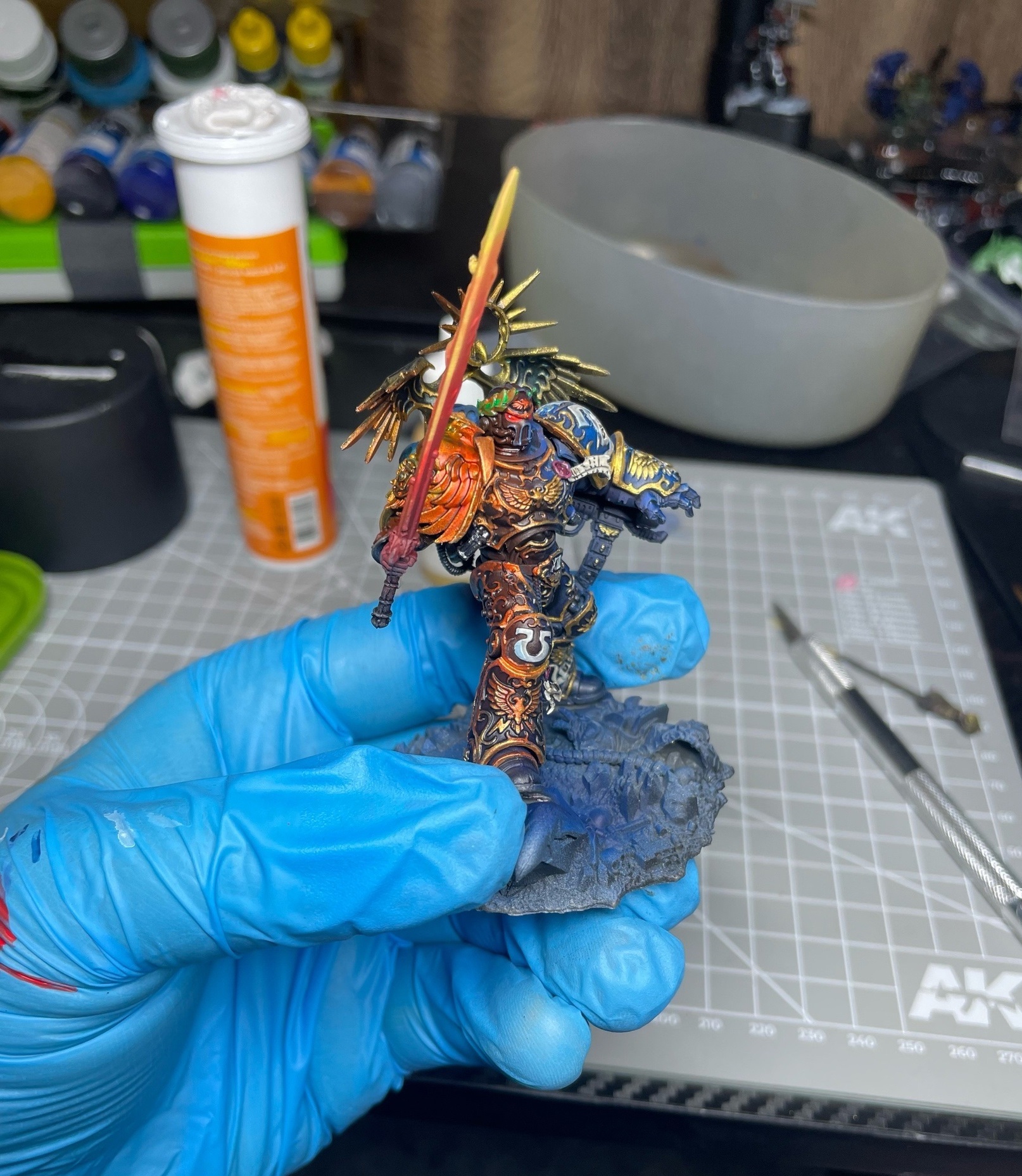 Здарова, я тут уже писал про то что вкатываюсь в покрас, спрашивал совета. Из советов было начать покупать нормальные фигурки(литье, или гвшное литье), и поменять краски. Краски я поменял, стало лучше, покупать фигурки не буду, похуй. Но вопрос как красить актуален. Посмотрел, почитал кучу гайдов, но проблема в том как нкчать их применять. Сидит значит важный хер такой на видосике, и красить плащ наслаивая слой на слой, или красит кожу какой-то ебаки. Мне для моих рогатых натуралов просто хуй знает что из этого спиздить, вот конкретный термач, что мне добавить после моих базовых слоев на нем? Как сделать его эстетичней приятней, и чтоб вах было. Замечал что на покрасах гв по краю брони сначала заебашут прливку по стыку, а затем высветляют. Я немного порисовал тут на нем, это впринципе добавило ему выразительности но немного.