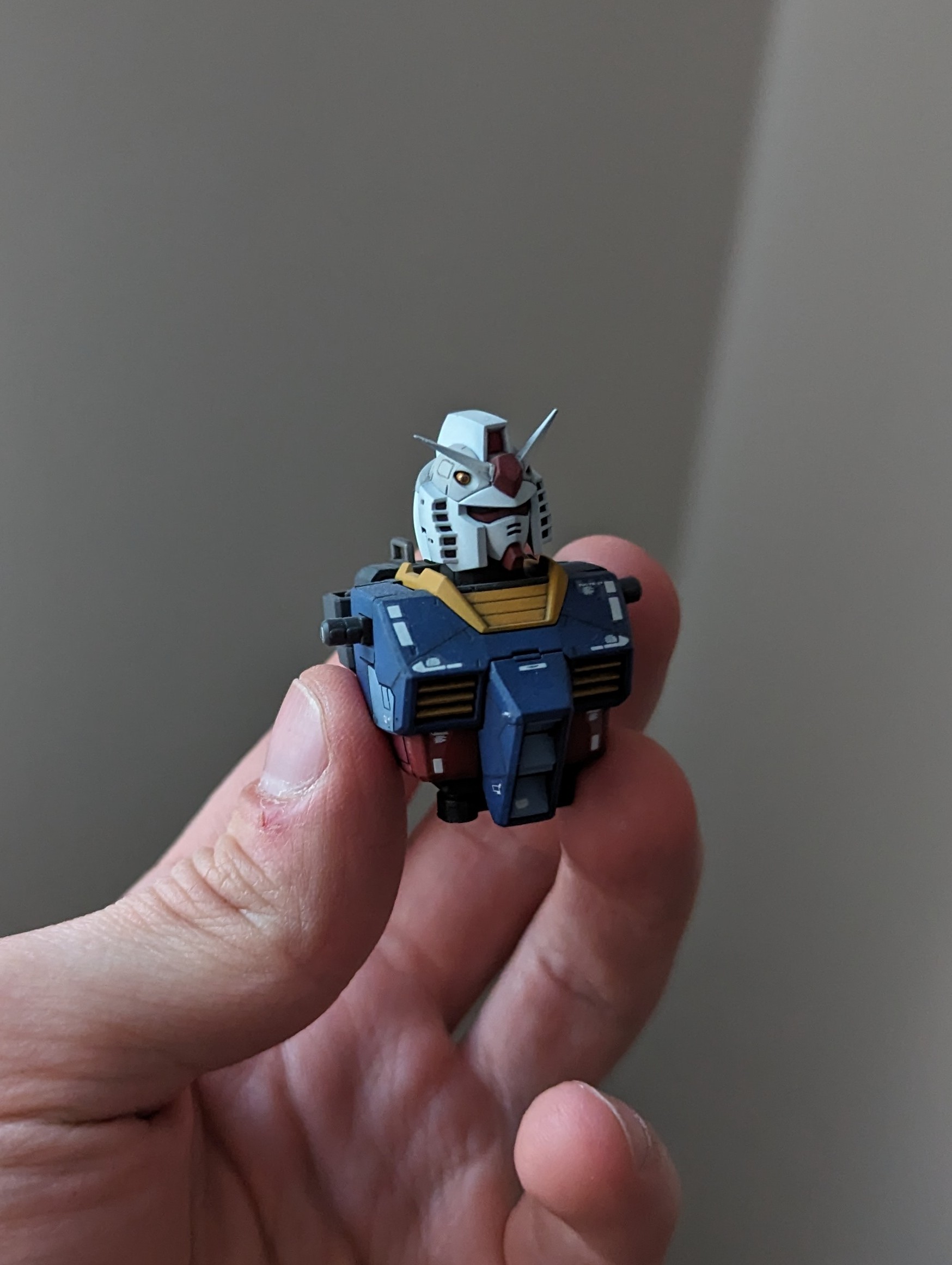 Основное вроде домазал. Покрас максимально васянский вышел конечно, надпись на ляхе всрал, но переделывать страшно. По классике потратил дохрена времени на винтовку, которую я не буду видеть примерно 99% времени. Глаза для первого раза вышли неплохо, немного кривоваты но за волосней и за счет позы не сильно видно вроде... А так сам по себе кит конечно очень крутой, после 2б прям одно удовольствие было его красить собирать, оно даже само на земле стоит без подставки. Но красить аниме уже подзаебался чутка коненчо.