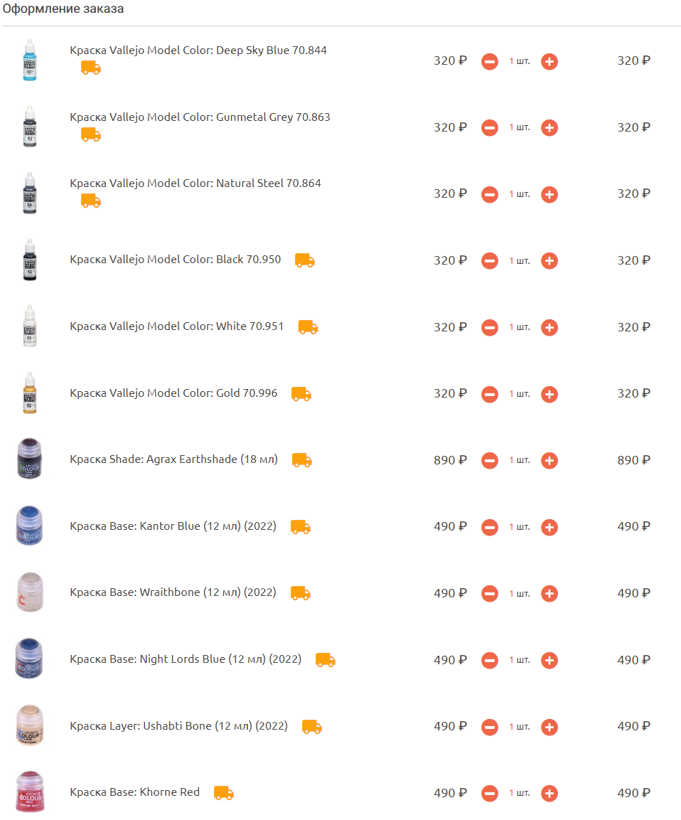 >>1083248 Посмотри на наборы у валехи. Есть набор металликов, к примеру, набор базовых цветов. Должно быть деевле, чем по отдельности, раз уж ГВ с продаж свой сет красок сняли.