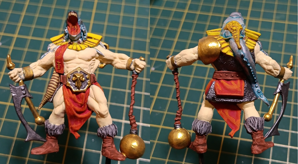 Руны на тряпках всрато получились, но там мои компетенции всё. Символы имеют слабый рельеф + он дополнительно стерся слоями краски. Проливка жиновато на гребне хвостов получилась, может подправлю а может нет. Ну и на кончиках этих же гребней краска сошла, потому что руками хватался.