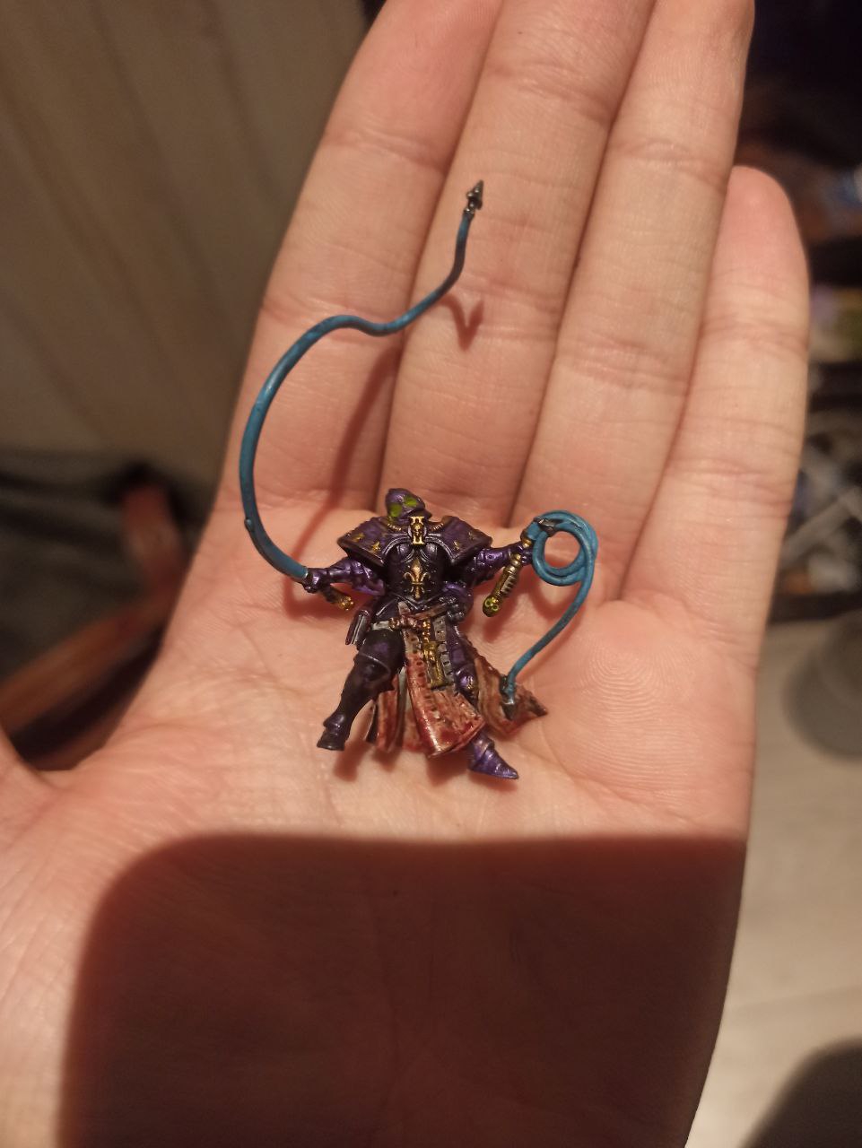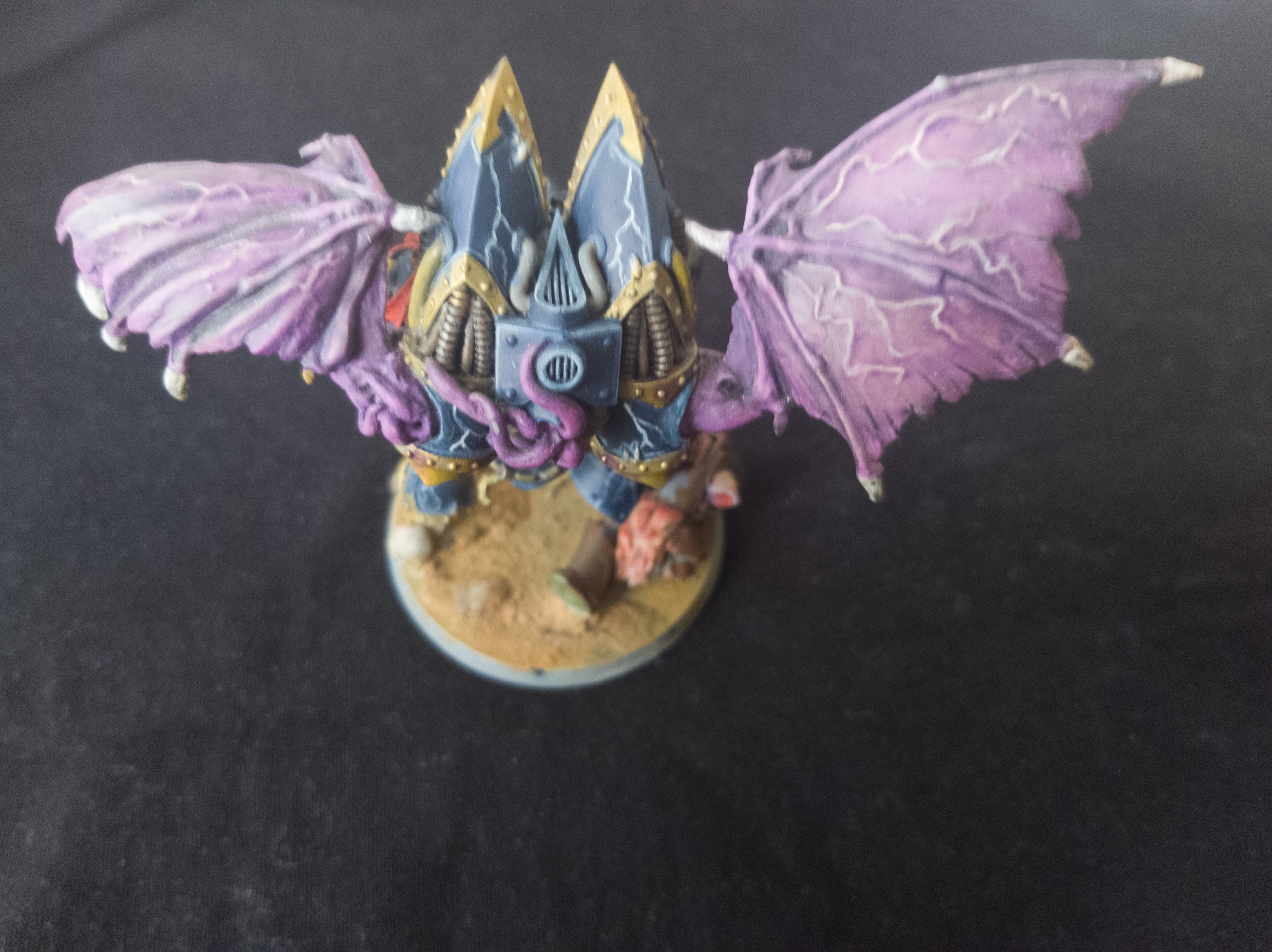 До сих пор не понимаю как фотографировать так чтоб некоторые товарищи говорили что им все видно, но вот. Зацените моего демон принца с крыльями. 3д печать, соединял части лепкой. Непонятная ебулдыга на руке это типа демоническая пушка которую пытался сделать в форме конского фаллоса, все-таки Сланеш. Так вот, скажите чтоль как вам, скажите по цвету, как красить, что можно еще сделать. Базу думаю помазать чем-то, но не знаю чем. По размеру знаю что чутка лоханулся, но в целом под оазмеры дпхи с крыльями подходит из-за его высоты крыльев.