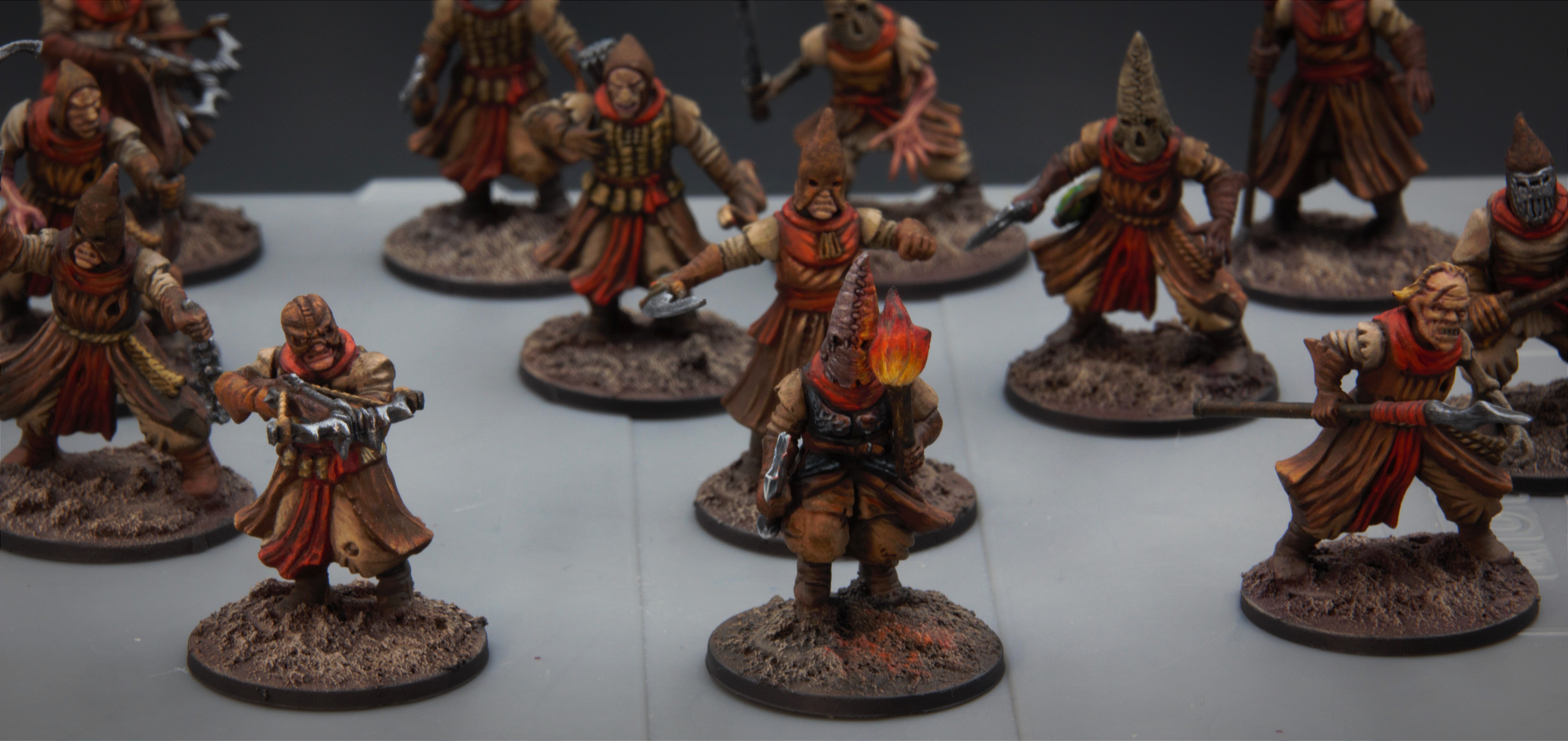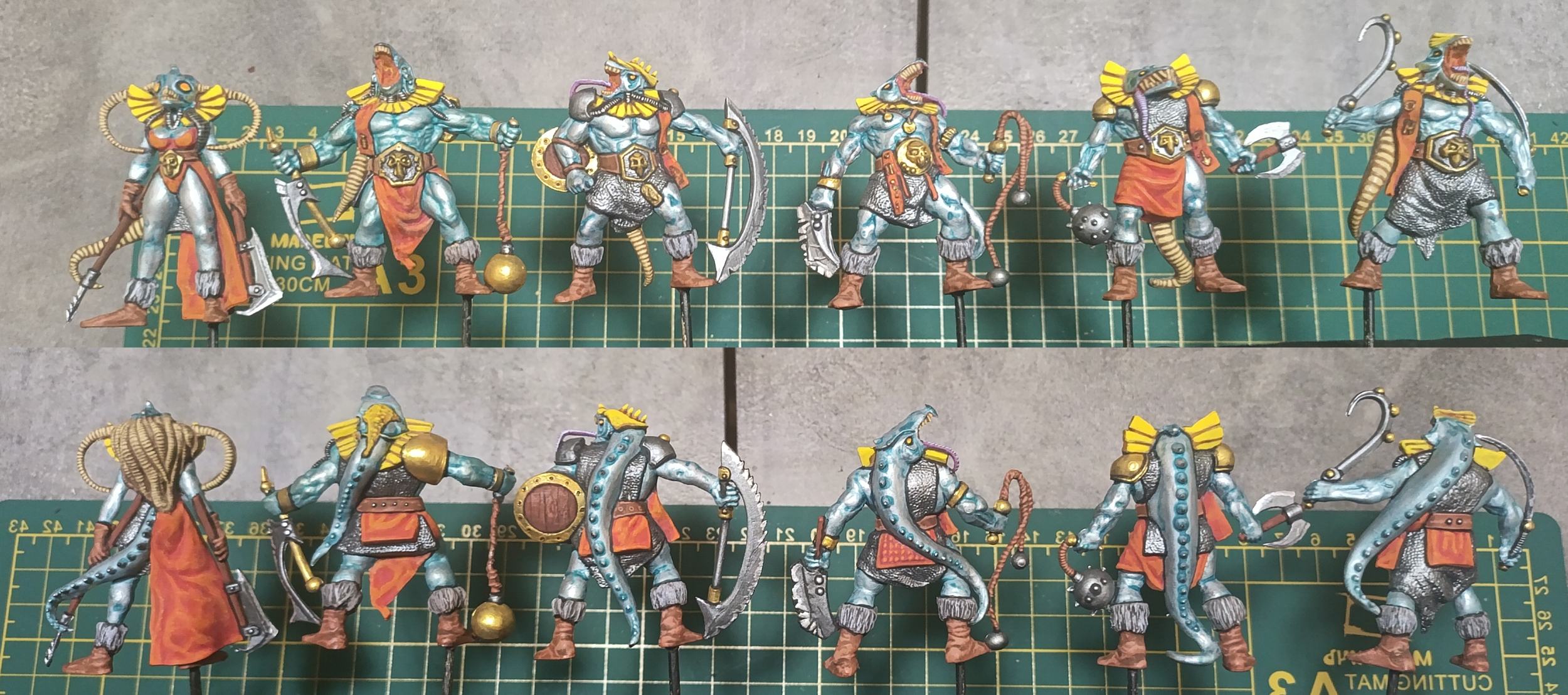 Отряд внешним видом в процессе мне полюбился, но красить его я замучался. Сейчас думаю какие-то последнии штрихи доделать и под лак. Красить одновременно шестерых уродов заметно трудозатратнее, чем предыдущие отряды из четверок.