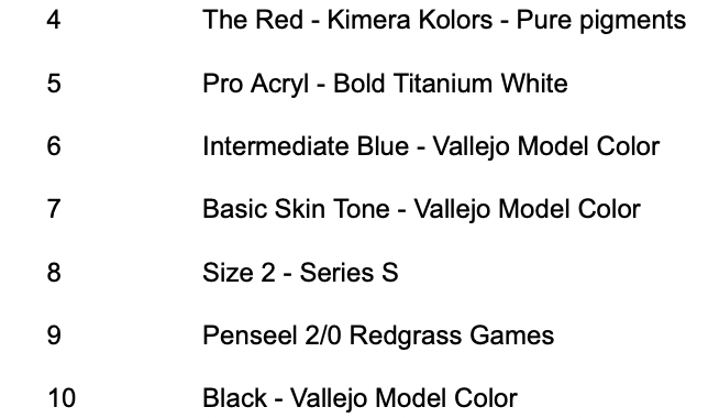 Второй вопрос по общей идее покраса, вот я хочу на первый раз сделать что-то не сложное, я выбираю фигурку, смотрю на цвета, для каждой области одного цвета нужно как минимум три оттенка: условно говоря базовый слой, хайлайты и грани, ну и плюс проливка для теней. Получается что все эти начальные наборы с 16 цветами например нахуй не вывозят ничего и лучше просто взять под выбранную схему что надо. Алсо металлики тоже надо разные брать и слоями делать чтобы заебись было?