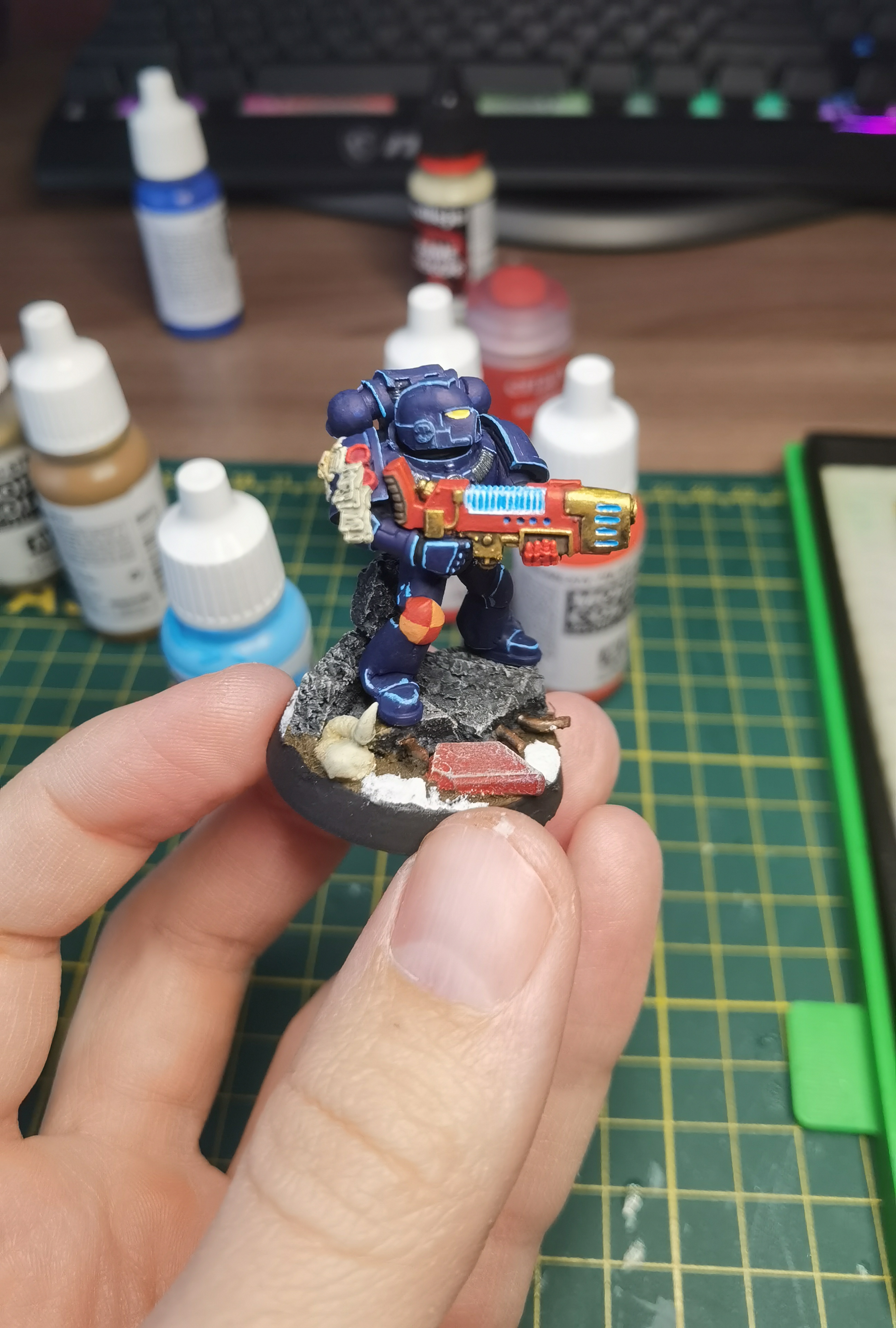 Всем привет, с вами собиратель ночников, и я кажется осознал еще один этап покраса человечков. На самом деле понял давно, но вот щя покрасил легионера с риперкой так, что мне понравилось. На наплечники не смотрите, я еще думаю как их исправить. Хотя, если будут советы как им придать вид таких перепончатых крыльев, говорите. Че скажите?
