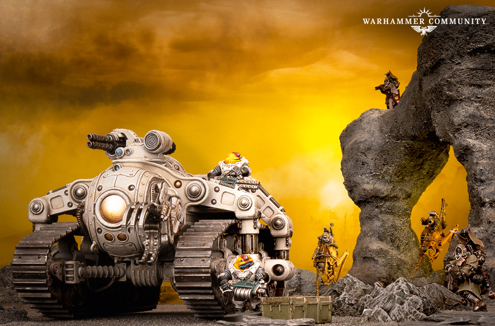Вся работа началась с вопроса "А что если Механикум потеряют берега?". Воевода Гор разрешил своим железякам использовать забытые и проклятые знания, а также подключаться к Варпу. Нужно было создать эдакую предтечу к тачилам Хаоса в 40К, поэтому все силуэты должны были стать колючими, тонкими и страшными.