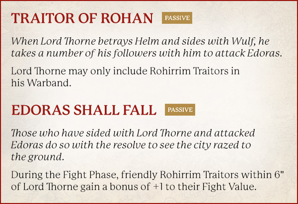 Лорд Торн из Волда является одним из советников Хельма. Он - трусливый дворянин, что готов предать как только, так сразу, правила как бы намекают. >Lord Thorne is the latest character to be revealed for the Middle-earth Strategy Battle Game Понимайте, как хотите.