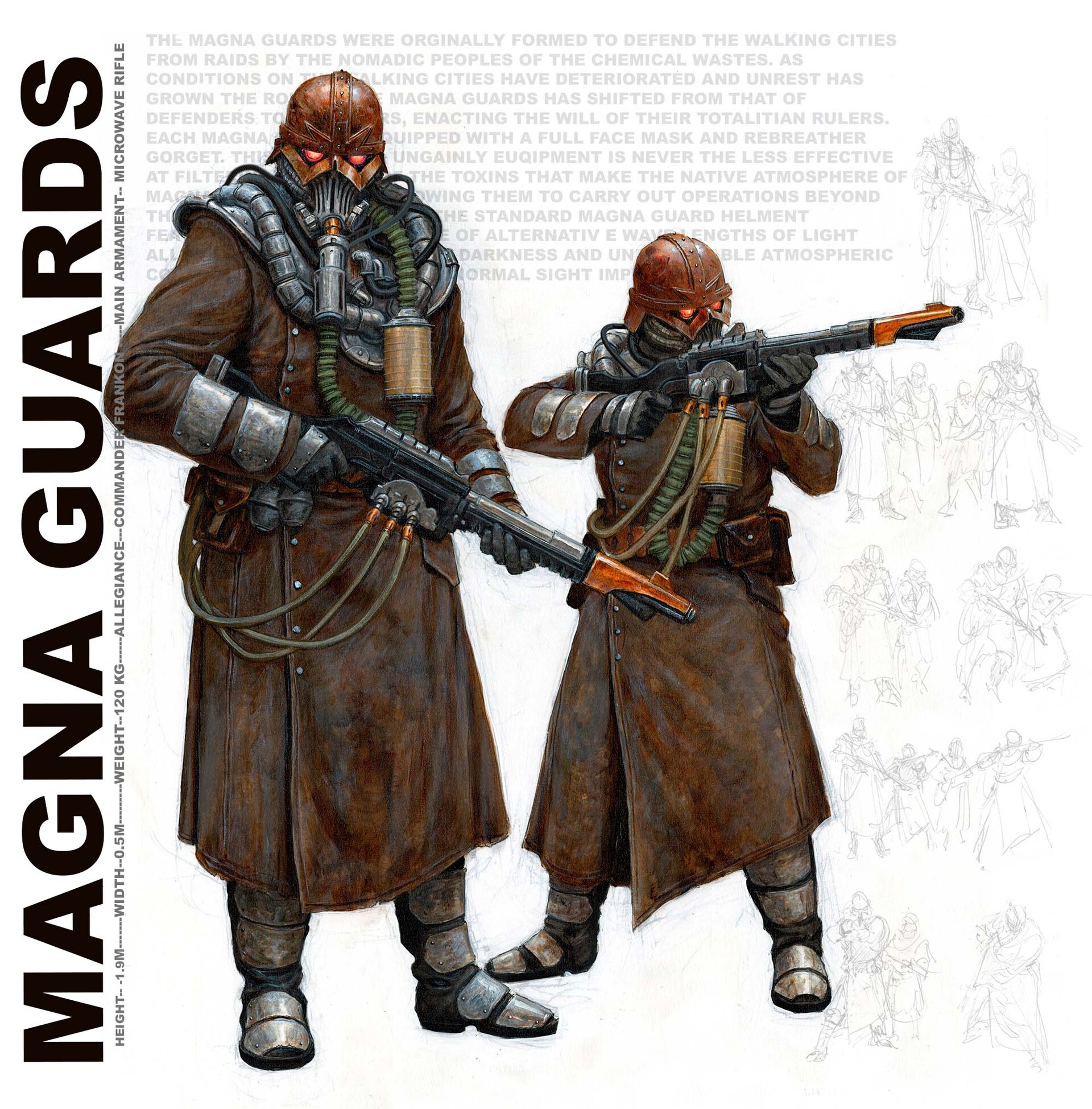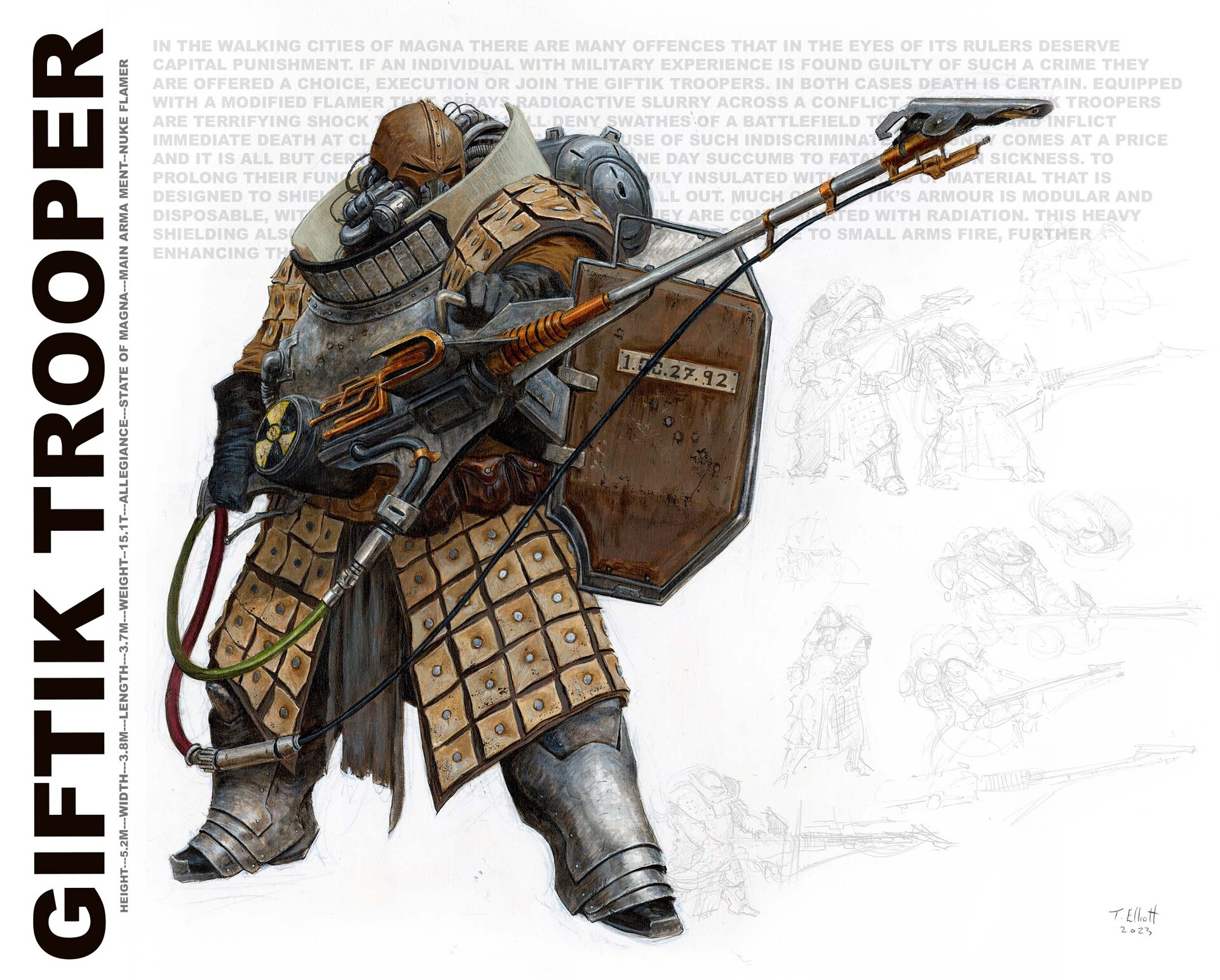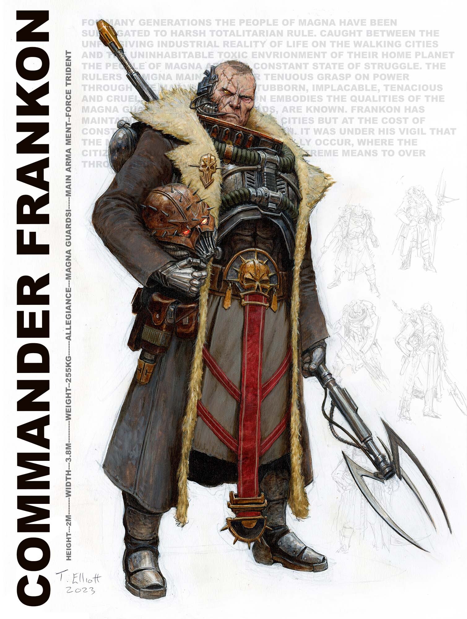Томас Эллиотт, работавший пять лет на ГВ, ушел на вольные хлеба, и пилит собственный гримдурк-сеттинг Eskaton, идею которого он вынашивал с худшколы. А всё потому, что он вахаебствовал, но, как художник, не хотел малевать фанарты по вахе. В Эскатоне стагнирующее человечество разбросано по изолированным планетам, межзвездные перелеты сложны и редки, а галактика полна ужасов. Для художника сеттинг - это песочница с бесконечным потенциалом, в которой могут существовать самые безумные персонажи и миры.