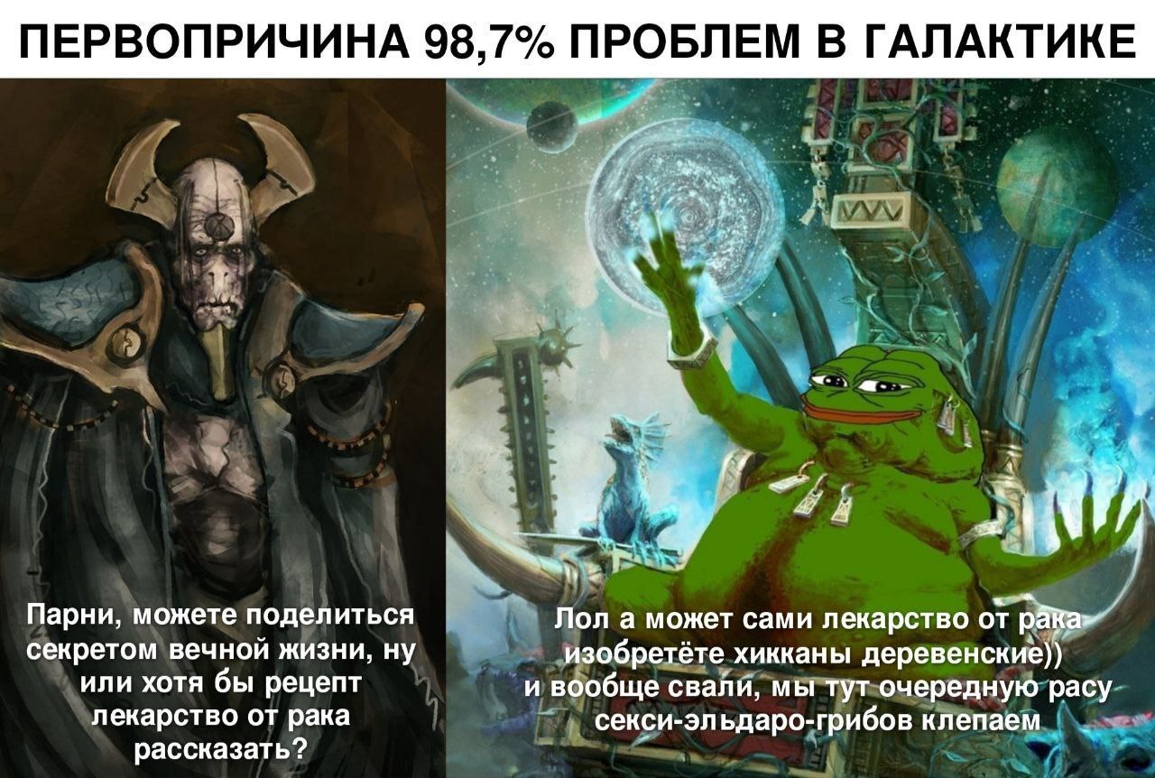>>1127448 >всю варп хуйню Ну не, от варп хуйни орки тоже немало по шапке получают, просто их это устраивает. Никто от вирдбойзов точности и предсказуемости не ожидает просто потому что орки в принципе так же ее не особо демонстрируют. >каких то жуков Они чужды нашей галактике, конечно у них будет все странно и по-другому. >То демоны есть типо у хаоса, но есть И другие обитатели варпа. Как бы хаос ни хотел и не стремился, весь варп заполнить у него пока не вышло.