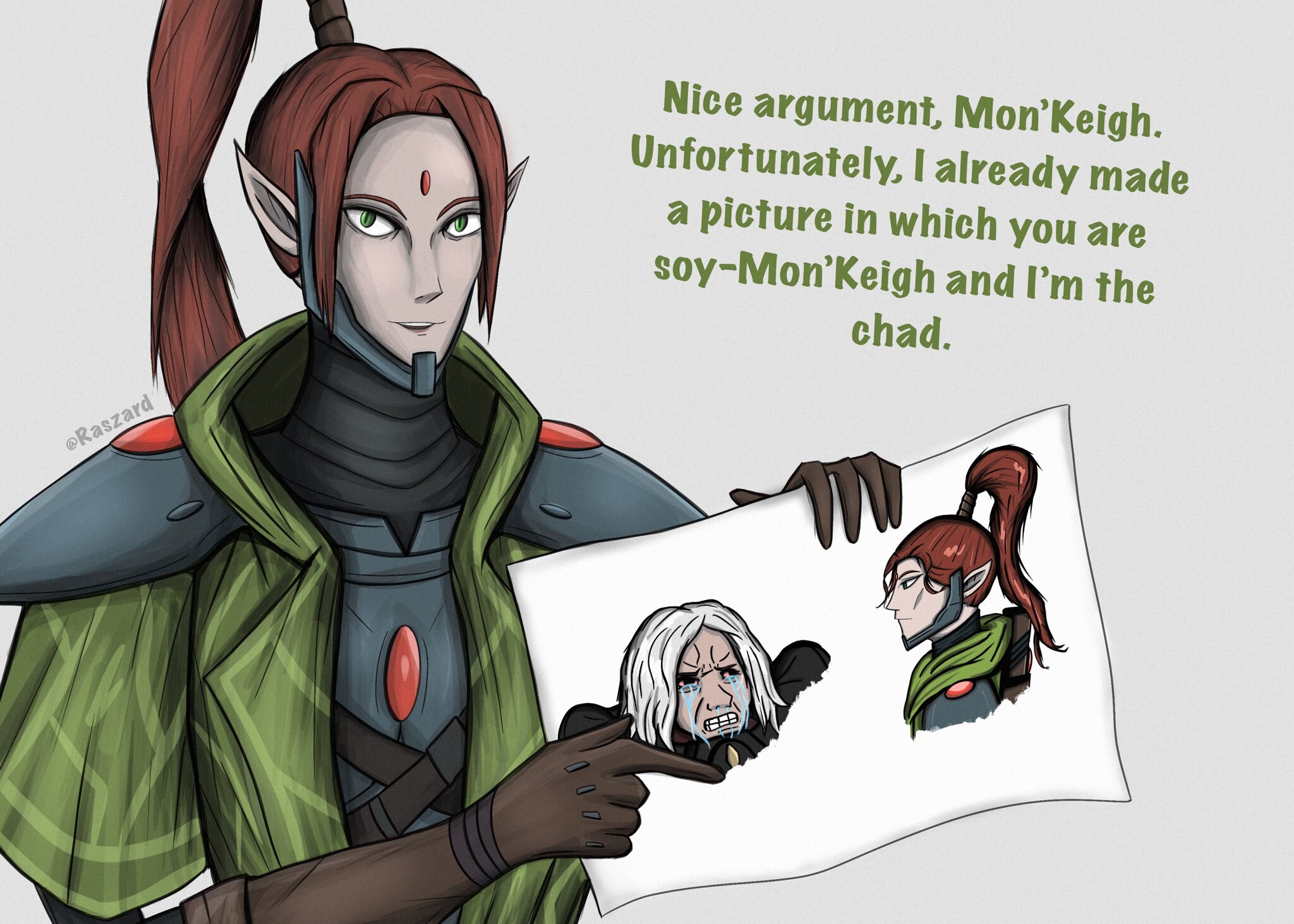 >>1133567 Буквально, сюжет эльдарской линии " Богов Марса" - снести планету безумного магоса Телока, уничтожить десятки кораблей экспедиции с тысячами мон-кеев на борту каждый, вырезать крейсер Черных Храмовников, уничтожить бесценное наследие Темной Эры Технологии - и все это ради того, чтобы... Забеременеть девочкой-пусечкой. Сперанца, мизогинистические Храмовники и магос- хуеносец ломали линии вероятности и не давали главной героине забеременеть! Спойлер:Так и не родила. Во всем виноваты мерзкие мужские мегамужики. Осуждаем экспедиции Империума на край галактики, всем Твичом осуждаем!