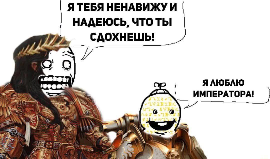 >>1133254 Всем похуй на Жилю. Его даже смертный дед в ебало посылает. ЧХ примарисов режут,вместе с кустодесом, ибо не императоругодная хуйня. Без договорившихся кустодес - примарха бы вообще Астериан Молок в бобик запрессовал. Вот позору было бы... По факту, он там что-то символизирует, сражается, но если попробует переворачивать основы и реально править Империумом - отгребёт. А Механикус так вообще, автономная каста и тут даже Он, Като Сикариус,вместе с Первой Ротой не поможет. Их хуйню приходится терпеть в любом случае и уровень охуевшести киборгов хоть как-то их регулирует только соответствующий ордос инквизиции. И то потому что всегда можно сказать,что про инквизиторов ничего не знали и вообще "а мы тут не при чём,а мы тут не причём, кушаем мацу и двигаем плечом!"