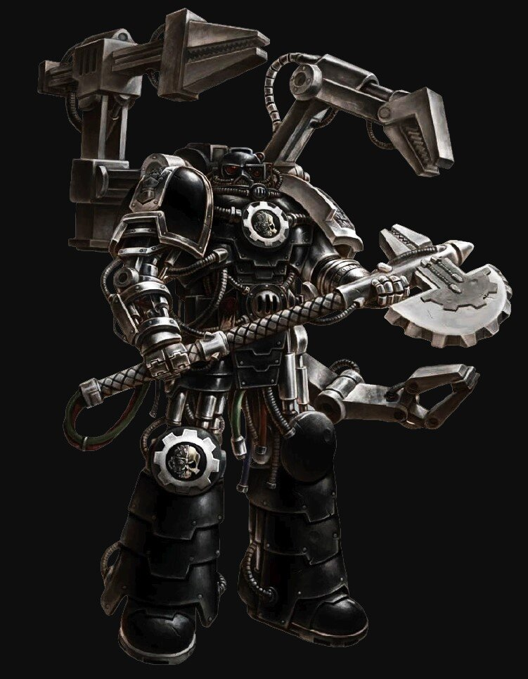Вообще, мне нравится концепт хелбрута: десантника замуровали в саркофаг, чтобы страдать, но он пророс через него и снова может чувствовать солнышко, дуновение ветерка... И на душе у него настал мир и покой, прерываемый только резней во имя Темных Богов.