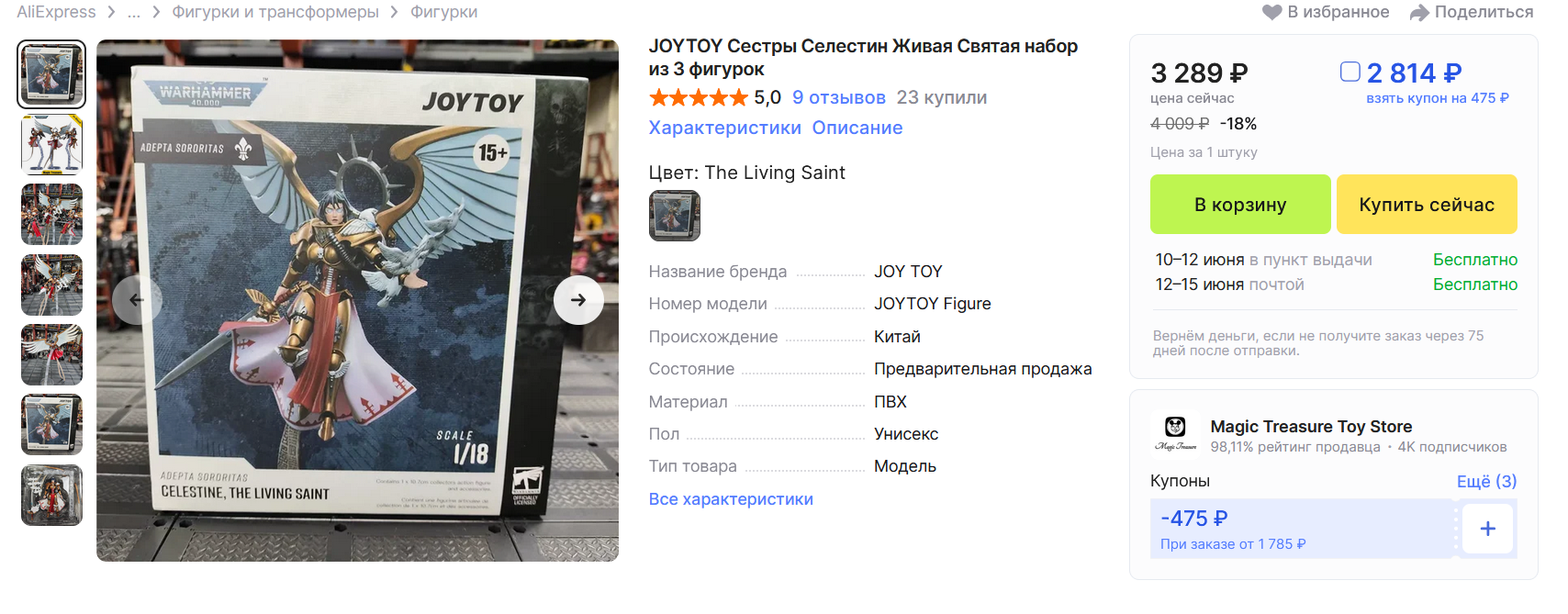 Менеджеры активно отвечают в дискорде по поводу разработки новых моделей Купить можно на различных сайтах, разрабы пиарят этот https://www.cooltoysclub.com/ но дешевле всего на Али, разбирают там быстро, поэтому из первых выпусков моделей мало и они могут быть дороже. Официальные магазины cooltoysclub и JOYTOY STORE на ОЗОНе проверенно доставляют за 3-4недели, цены +\- прыгают в зависимости от скидок, акций и новизны моделки.