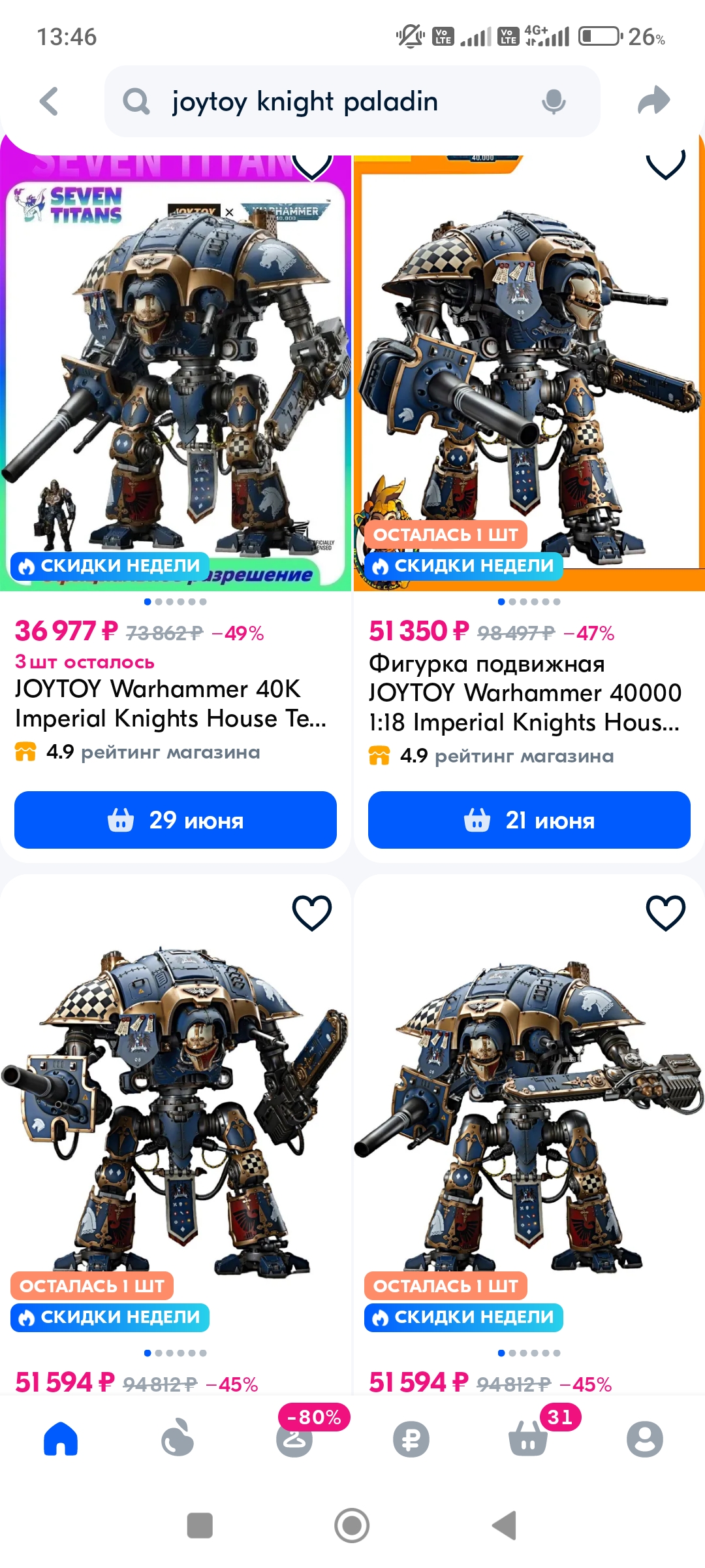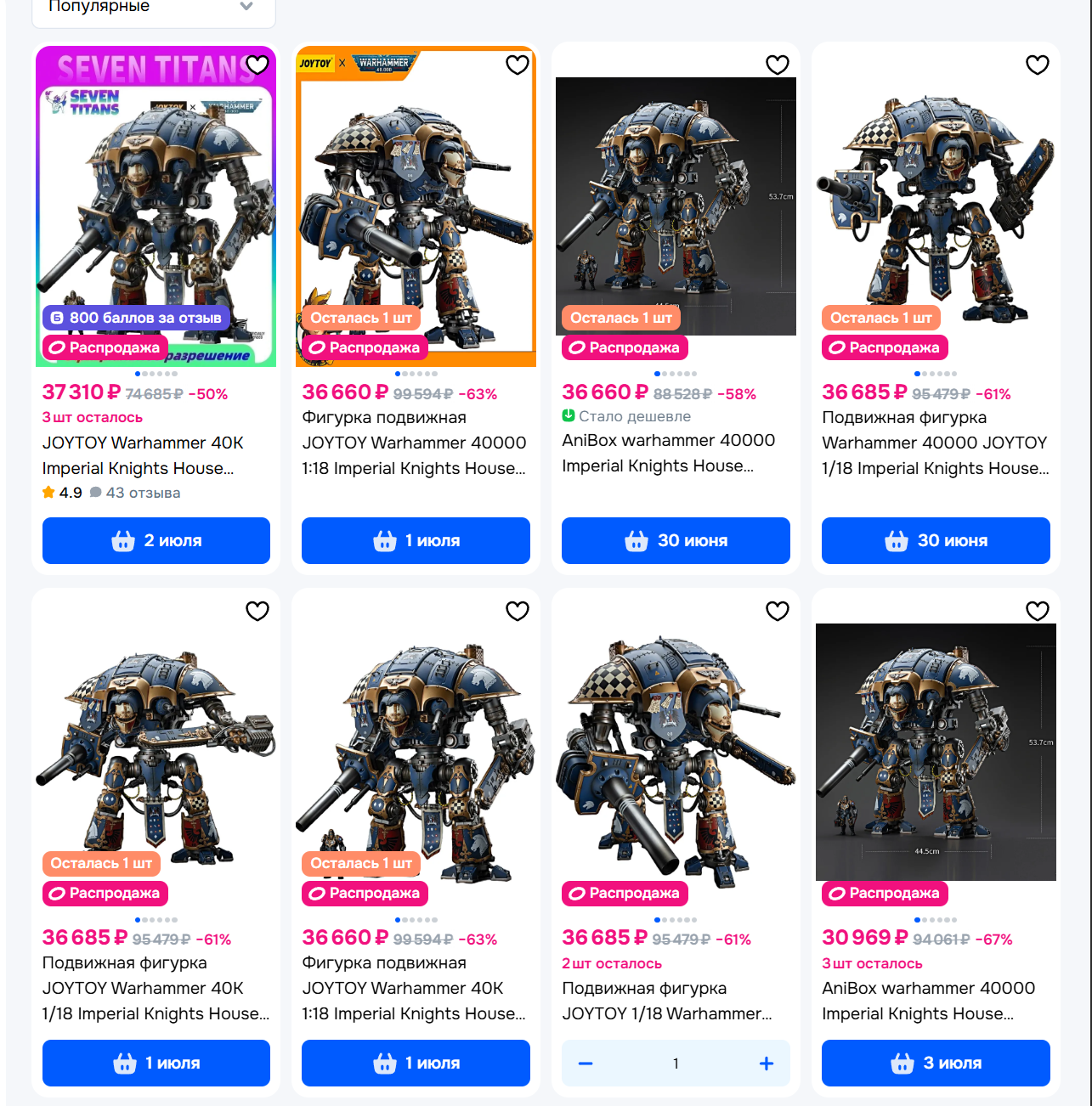 У меня за ночь из корзины на озоне 90% фигурок исчезло, остались только интерцепторы от ноунеймов и лоты с московских складов по х2-х3 цене... это страшно ребята...