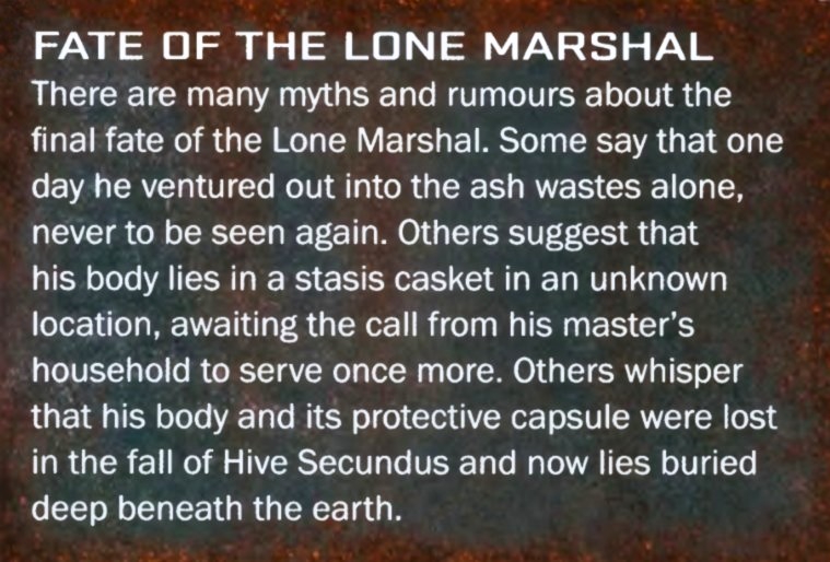 Возможный Человек Золота? Новый Губернатор Некромунды. Есть ли у кого-нибудь ещё подозрения, что Озостиум Арантус, новый Планетарный Губернатор Некромунды, на самом деле может быть Человеком Золота? В статье говорится, что он старше Империума, и что его история длинная и жестокая. Он выглядит неестественно хорошо сохранившимся, учитывая все обстоятельства. Он выше обычных людей, что может указывать на генную манипуляцию. В ней даже говорится, что он использует силы, изменяющие его внешность, чтобы ему поклонялись как полубогу, что-то похожее на другого известного нам персонажа из ТЭТ, Императора. Станет ли этот парень огромным открытием для лора? Потому что я так думаю.