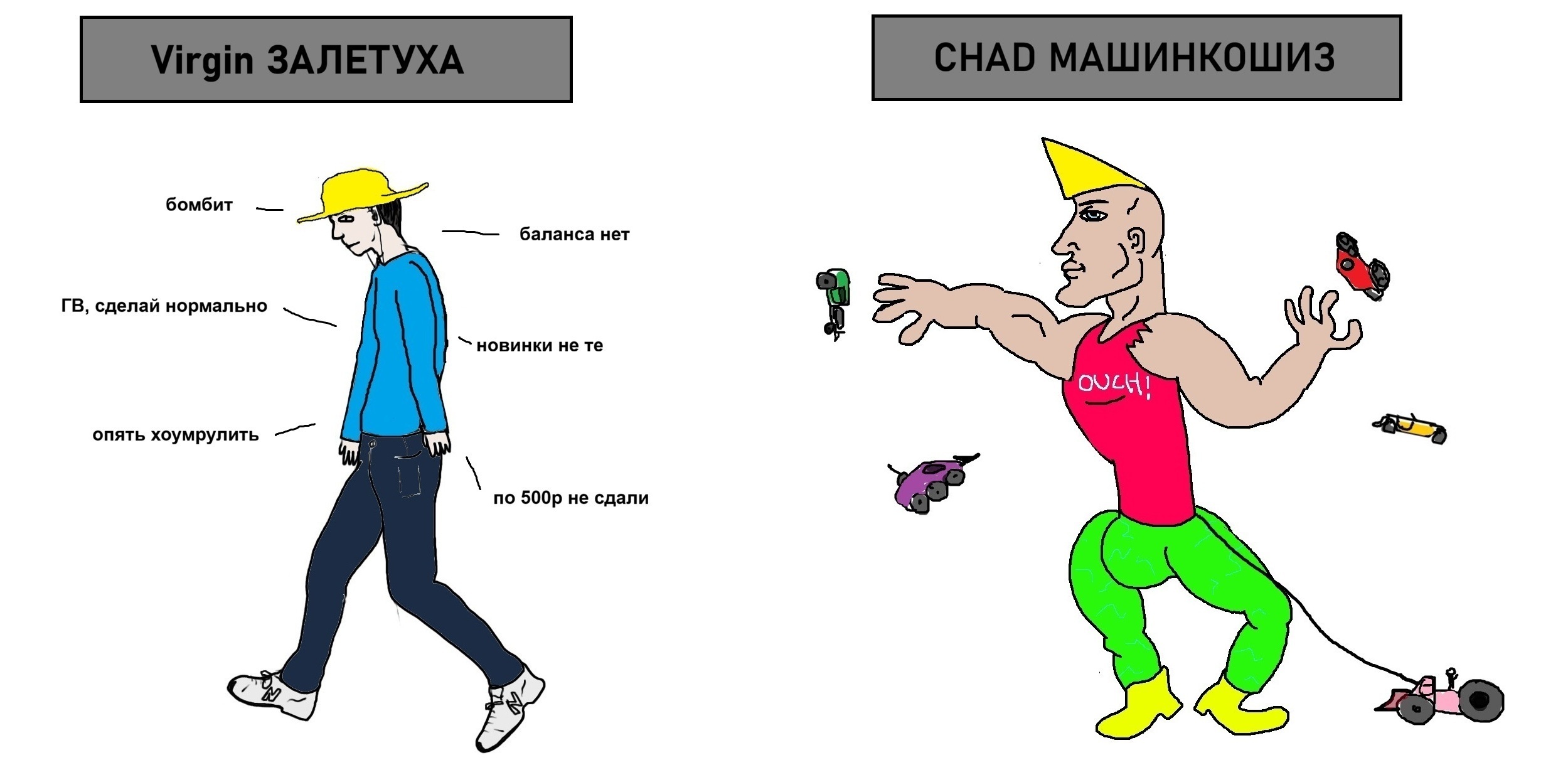 >>1148431 >Мелкие это голиафки? Нет, видно же, что мужики. Это стремящиеся, которые прибились к Голиафам и пытаются обожраться стероидами до их уровня. Если зарекомендуют себя, то им могут даже генетику пофиксить, чтобы стали ближе к голиафам, сильнее, выносливее все дела. Но и женщины среди них тоже есть. И вообще среди голиафов.