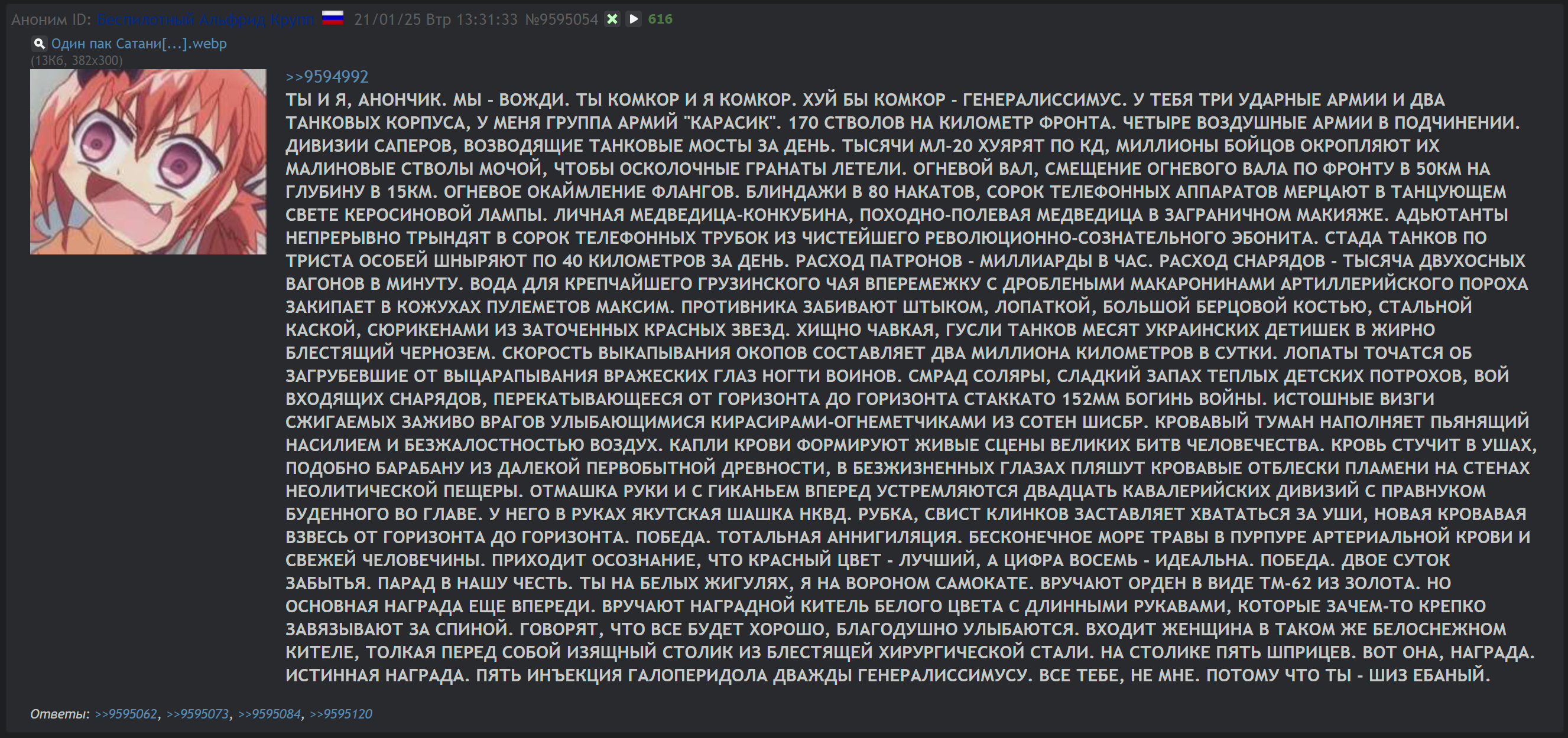 >>1144646 >А командирам 4-й сферы потом пиздюлей выписали вроде Настолько выписали, что один из командиров четверки у Шадоутян бегает. Алсо, как там сама Шадоутян поживает, которая под угрозой варппиздеца заставила молиться всех хуманов на это самое высшее благо, чтобы случилось ЧУДО ИМПЕРАТОРА ВЫСШЕГО БЛАГА? Давай, расскажи что это другое