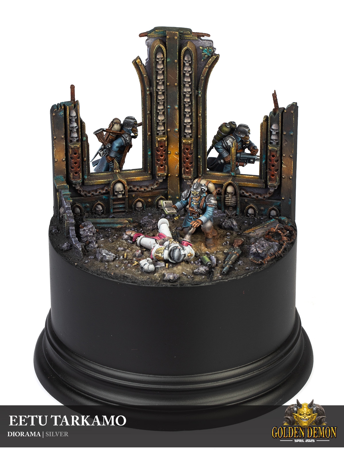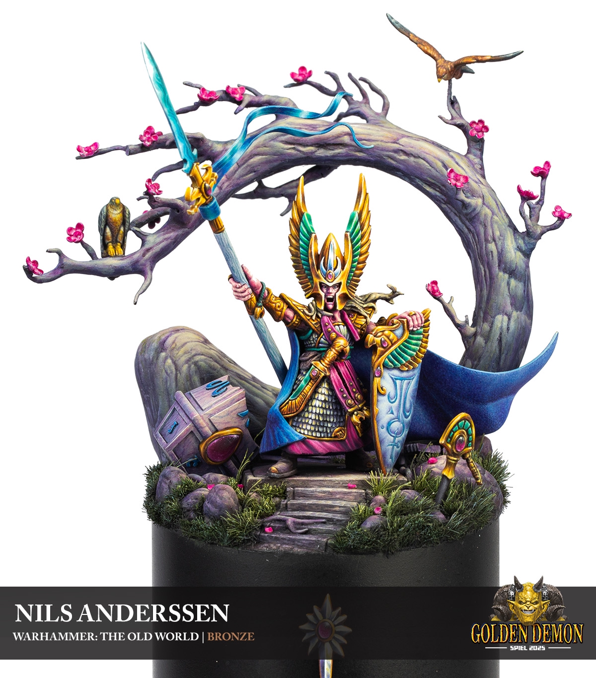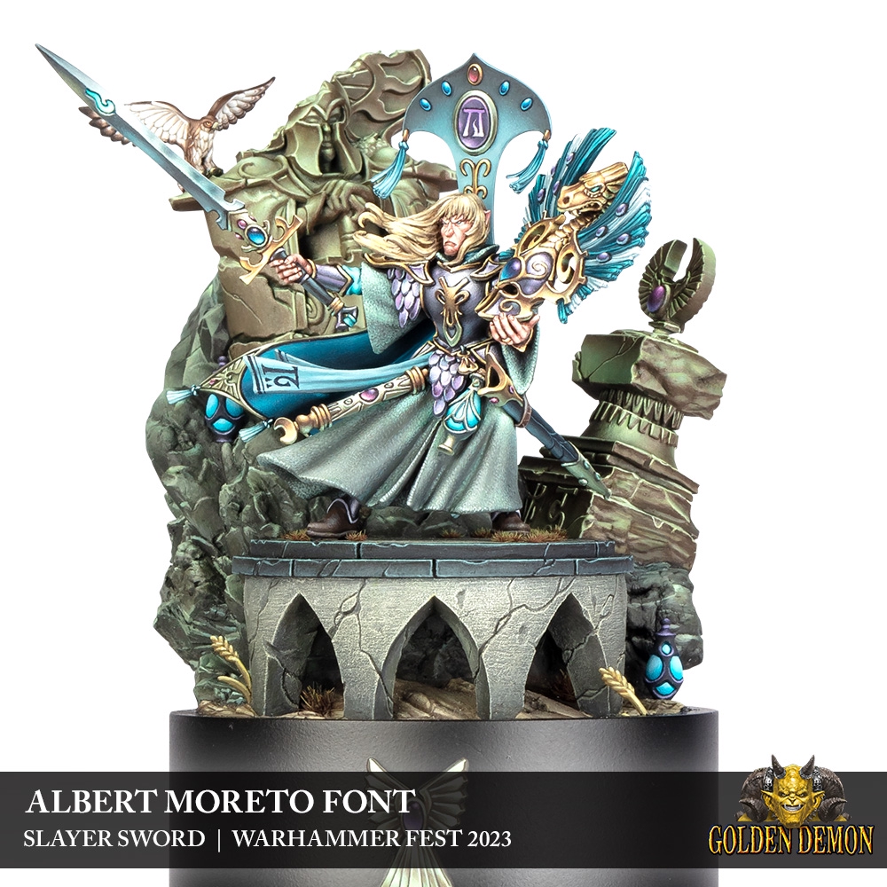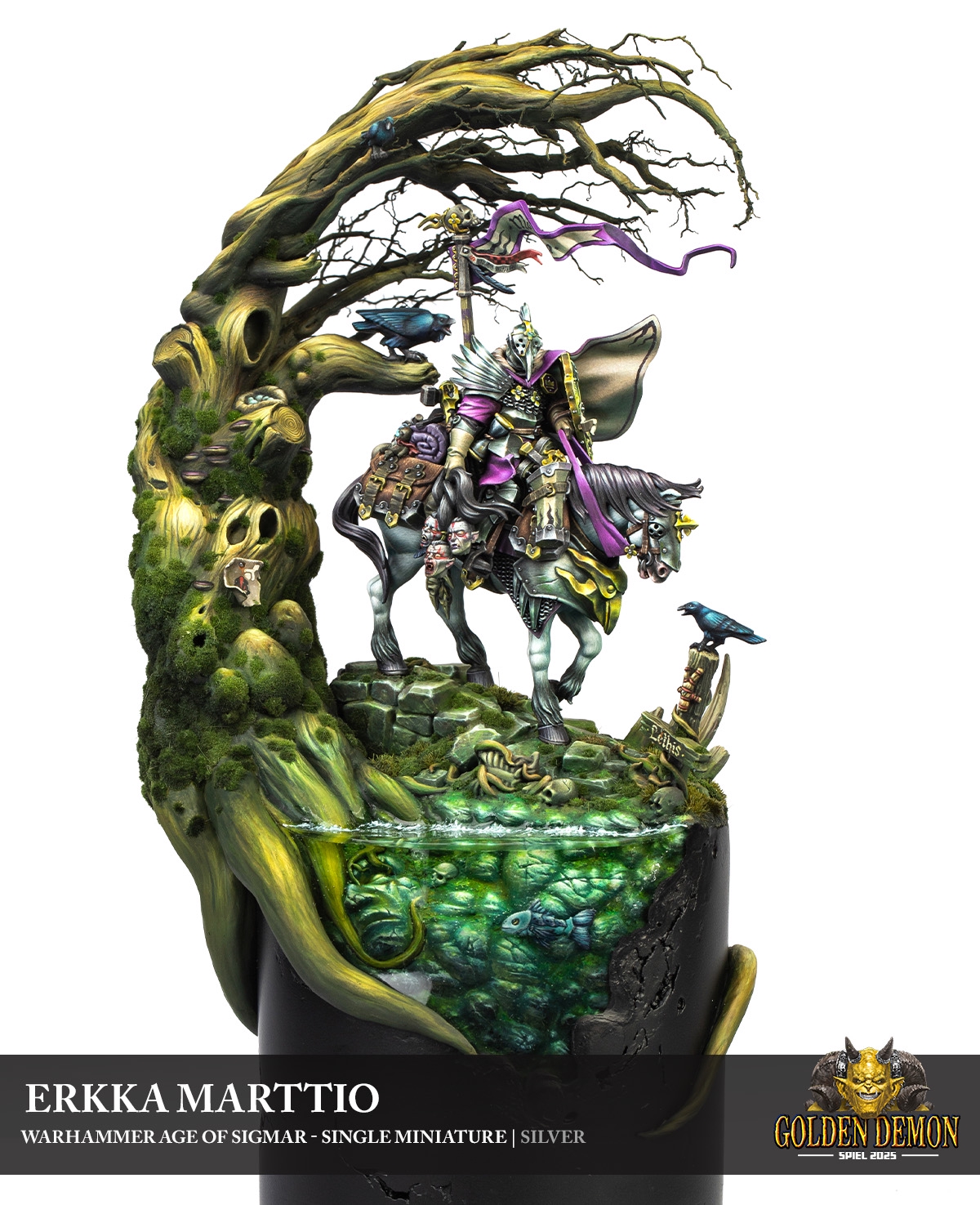 Если было интересно, что это такая за миниатюра, выигрывшая Slayer Sword, то вот немного про нее. Аффтар поведал, что в ней было использовано как минимум 17 миниатюр из разных систем плюс лепка. Найди их всех! Collegiate Arcane Freeguild Cavaliers Tahlia Vedra Luminark Of Hysh Bastian Carthalos Lord-Terminos Necromancer Vanari Auralan Wardens Vanari Starshard Ballista Scriptor Mortis Lord Vitriolic Skabbik’s Plaguepack Asarnil the Dragonlord (1998) Tomb King on Necrolith Bone Dragon Ahriman of the Thousand Sons (1996) Sammael, Master of the Ravenwing (1999) Sammael, Master of the Ravenwing (1999)
