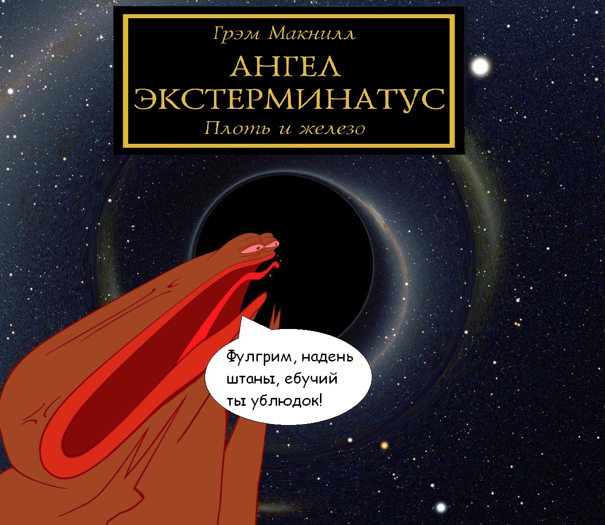 >>1151947 >>1151982 - Император!.. Император! - Заебал, блядь... - Как п... Как поспал, папа? победить хаос, наверное, хочешь, папа? - Ёб твою мать, блядь, иди отсюда нахуй, блядь! - Что, что случилося-то? - Ты чё, защиту в части эльдарской паутины мне сломал, мудак, блядь? - Не, я не ломал... Я вам вести о предательстве принес! - Сука, блядь, пидарас блядь! Хули ты сделал, ты чё, мудак что ли совсем блядь?! - Что вы, Император человечества! Я вам хотел показать, как Хорус предал! - Блядь! Все-таки сломал, ой мудель, блядь... Убери отсюда это говно отсюда, блядь. Сейчас будешь сам паутину покорять! - Я вам принес вести о предательстве принёс... - Чё ты мне принёс? Чё ты, мудак чтоль, блядь? Хули ты приперся... Хули ты в грязи весь вымазался, мудак блядь? - Я обряд проводил с жертвоприношением... - Пидарас, блядь! - Что вы.. - Сука, блядь! - Папа, вы что? - Убери это говно отсюда, блядь! -Я поговорил с Ариманом и вести-то вам... - Ёб твою мать, и половину кустодиев приговорил, блядь! - Хотел вам передать... - Мудак блядь! Ну ты мудак блядь! Я тебя ща убью, нахуй! Я тебя ща убью, нахуй, блядь! - Я вам принес вести о предательстве Хоруса Луперкаля... - Бля, ну ты пидорас, блядь... - О предательстве... - Бля, ну ты сумасшедший, ёб твою мать, а... Уймись, дурак, блять! - Хоруса-то... - Бля, ну и сыны у меня охуеть, ёбаный в рот... - Я не сказал никому больше я вам варпом клянусь, я... Я империи человечества хотел просто сделать доброе дело... Я не сказал... - Чё? Чё нахуй, империи добро? Какое доброе дело? - Я хотел... - Ты понимаешь, что ты всех демонов присумонишь этой поломкой блядь? Единственное место было, блядь, тут доделали бы и обходились без варпа, а ты всё уничтожил... Че, еп... Кто демонов выведет отсюда, кто прореху в варпе закроет?? - Я хотел... - Кому мне доверить сражаться с бесконечной ордой демонов? У кого блядь хватит сил?! - Я не проболтался... - Предателей убить? Я тебя сейчас убью! - Забота о жителях Империума у меня просто проявилася, забота проявилася! Я хотел вам просто вести о враге принести, я всем делал доброе дело! - Я тебя сейчас убью! Я тебя сейчас убью нахуй... Ты понял, что я тебя сейчас убью нахуй?.. - Ну что вы сердитесь, посмотрите! я вам хотел доброе дело сделать, заботливость моя обострилася, я о планах врага узнал и вам их принёс... - Блядь, уёбок... Иди к Манусу и Фулгриму, там проси помощи, понял блядь? Чтобы завтра тебя уже на Терре не было! Иди уноси свои вести! Идите вместе отсюда, блядь! - Я вам вести... - Хорус, Фулгрим, Альфарий, блядь! КУСТОДИИ! Этот пидорас опять с демонами спутался, блядь!!! ЛЕМАААН!!! Иди уноси свои вести, чтоб Хорус раньше времени сюда не приперся, ты на Просперо спалился уже! - Я не проболтался.. - Ты понял, бляяядь?! - Вести-то.. - И чтобы жертв ритуала похоронил! Опять людей втянул в говно, пидарас, а! ХАОСИТЫ!!!! Блядь, он мне всю защиту разъебал и помощи просит!!! Изгоните его нахуй, я с ним и в одном покое стоять не буду, блядь! - Хоруса не победим! - Я не буду с этим шарлатаном вести дела, сука, блядь, а! - Спокойная жизнь в Империуме испортица... - ХУЛИ вы мне в сыны отродье варпа дали, блядь! Он же мудак полный, блядь!.. Иди отсюда! - В Империум.. - Иди от.. - Только мой доклад может помочь! - Блядь.. Иди, фу блядь, нахуй, блядь... - Ууу... - Из-за тебя все погибнут! Иди на Истваан! Иди сам! Отвали от Терры блядь, а то убью нахуй! - В Империум-то... - Чтобы завтра же тебя тут не было, или я тебя придушу блядь вот этими руками, понял, блядь? - Четвёрка 