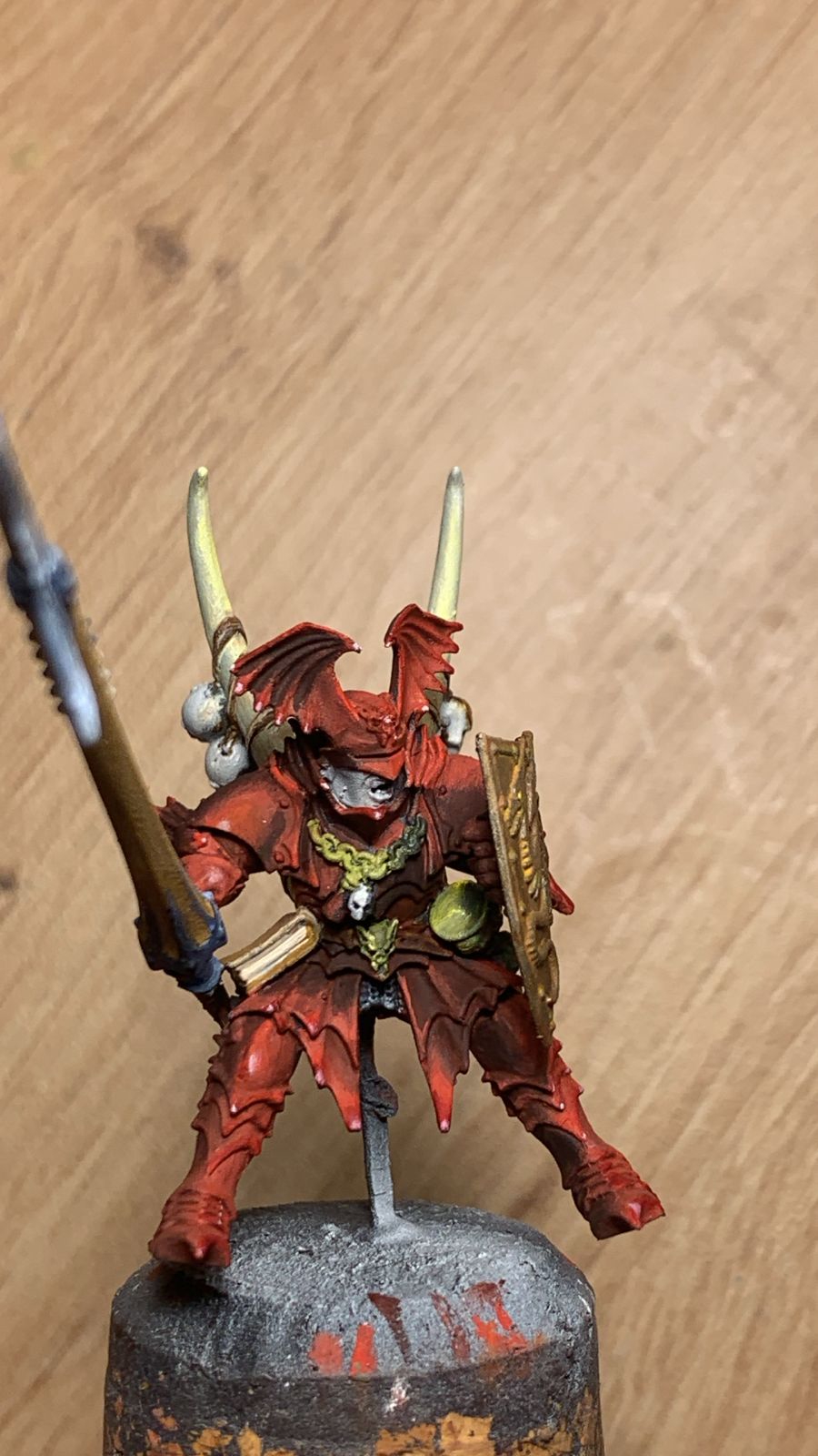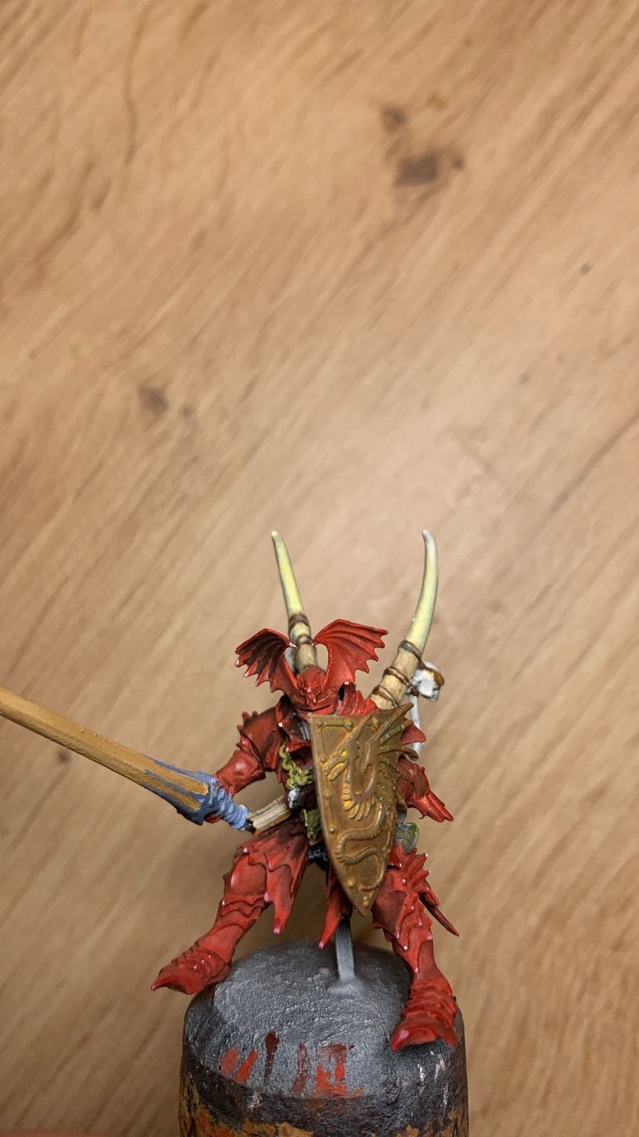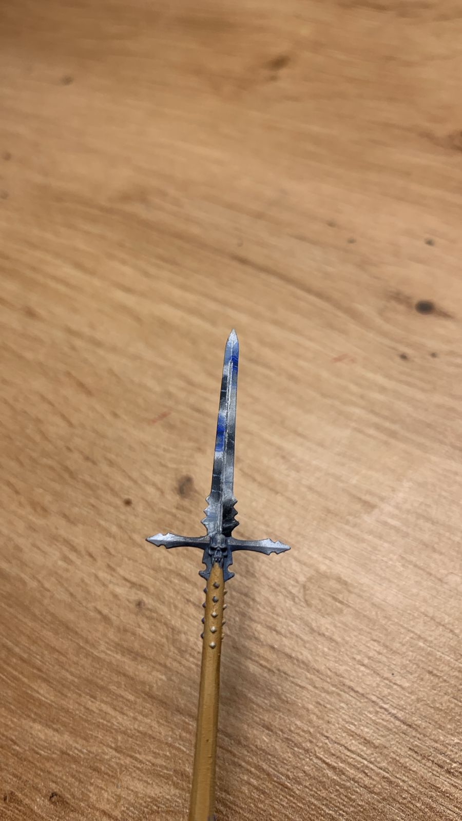 Углубил тени, добавил прозрачный слой краплака и еще точек белых понатыкал на выступающих поверхностях типа как экстремальное высветление. Детальки покрасил и копье тоже переработал. Как в целом получилось?