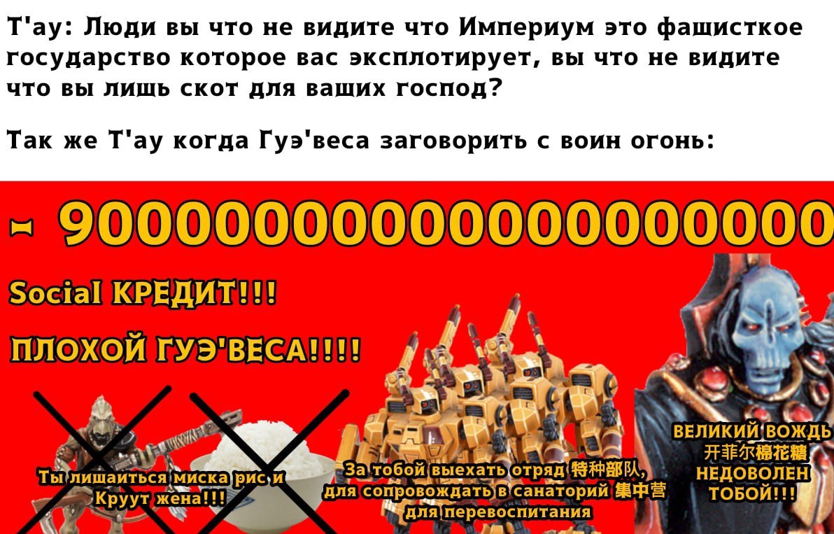 >>1152509 >для всех фракций Я простой рабочий Сычиус улей БляТыГде, сектор Ебеневка, сегментум Обскурус. Я устать жить Империум , работать на мануфакториум много получать мало зарплат не хватать порций амасек, бывать грустно из за этого. Я узнать про Империя Тау стать интерес как жить Тау когда грустно читать Аун'Ва. Симпотизировать великий Аун'Ши - несравненный лидер лидер Тау поднятый экономика, большой армия, Император проигрывать галактика регицид партия Хаос. Я хотеть видеть мой лидер великий Аун'Ши. Империум получать качественный двойной порция грокс мясо, достаток, отсутствие голодание