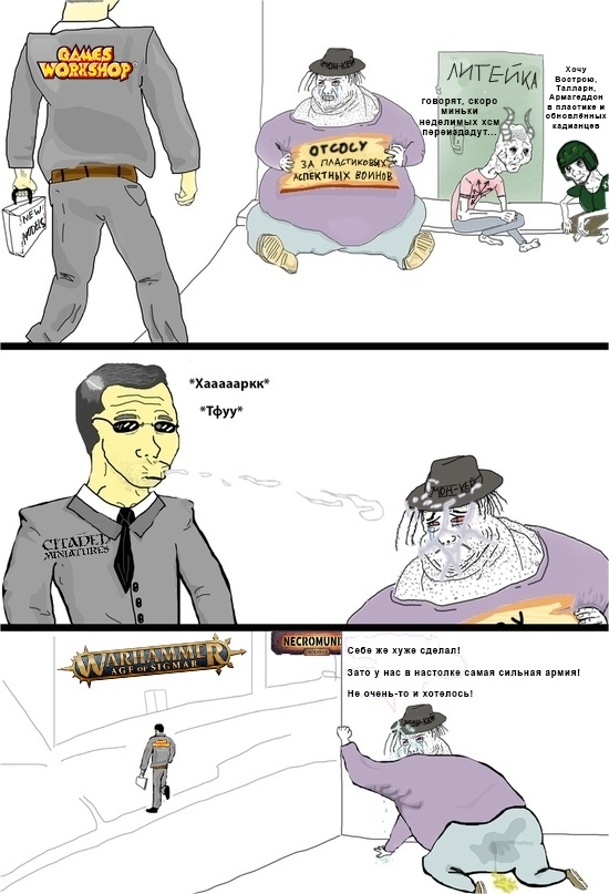 >>1152807 Сомневаюсь, когда я говорил про подростковую аудиторию, я имел в виду запад. В СНГ, восточной и южной Европе Ваха популярна в формате книг и видеоигр, а не минек. Потому что они дорогие. Чёрт, даже англичане и американцы уже жалуются на цены. Хотя вот я зумер. И когда ещё учился в школе, мы с друзьями играли в WFRP, Only War и Dark Crusade, но понятное дело без минек и со скаченными из интернета книгами правил
