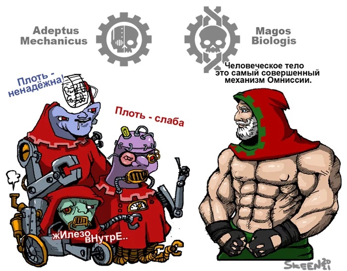 >>1154551 Официально - никак. Это лютая ересь, за это быстро, решительно в Империуме делают секир башка. Если космодесантник, например, попал в чужой орден и был туда принят (такое хоть редко, но бывает), его геносемя под роспись сдаётся на Марс, чтобы ни-ни. Даже если он того же примарха потомок. Однако ГоВе оставляет простор для фанфиков, намекая. Ну там есть, например. проклятое основание, у которых то когти из рук расти начинают, то голоса в голове, то ещё что. Есть орден Минотавров, котогые вообще ебанутые. Как их делают, ты должен придумать сам, по намёкам, ну как про двух потерянных примархов. Само слово "химерное" как бы толсто подсказывает, что пробуют смешивать органы от разных легионов. Да мало ли чем за 10 то тысяч лет весёлые биологисы не занимались.