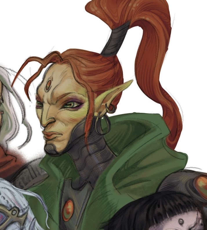 Его раса эволюционировала миллионы лет уже после достижения человеческой разумности, но вдали от цивилизации, то есть они более дикие и приспособленные ко всему, чем крууты. Сенфир добывают из чудовищ, схожих с тиранидами. Тем не менее, Эргалим получил образование в союзной организации и знает о вселенной такое, что не снилось ни человечеству эры технологий, ни эльдарам, ни даже некронам.