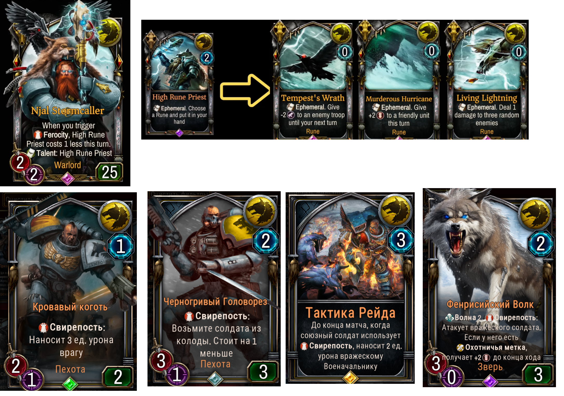 Комбо дед Логан. В скирмише ставит своих волков, бафает их вожаками и топит им в лицо. В классике изи можно собрать Логана на стратегемах с 4-6 существами в колоде из-за абилки на добор существа.