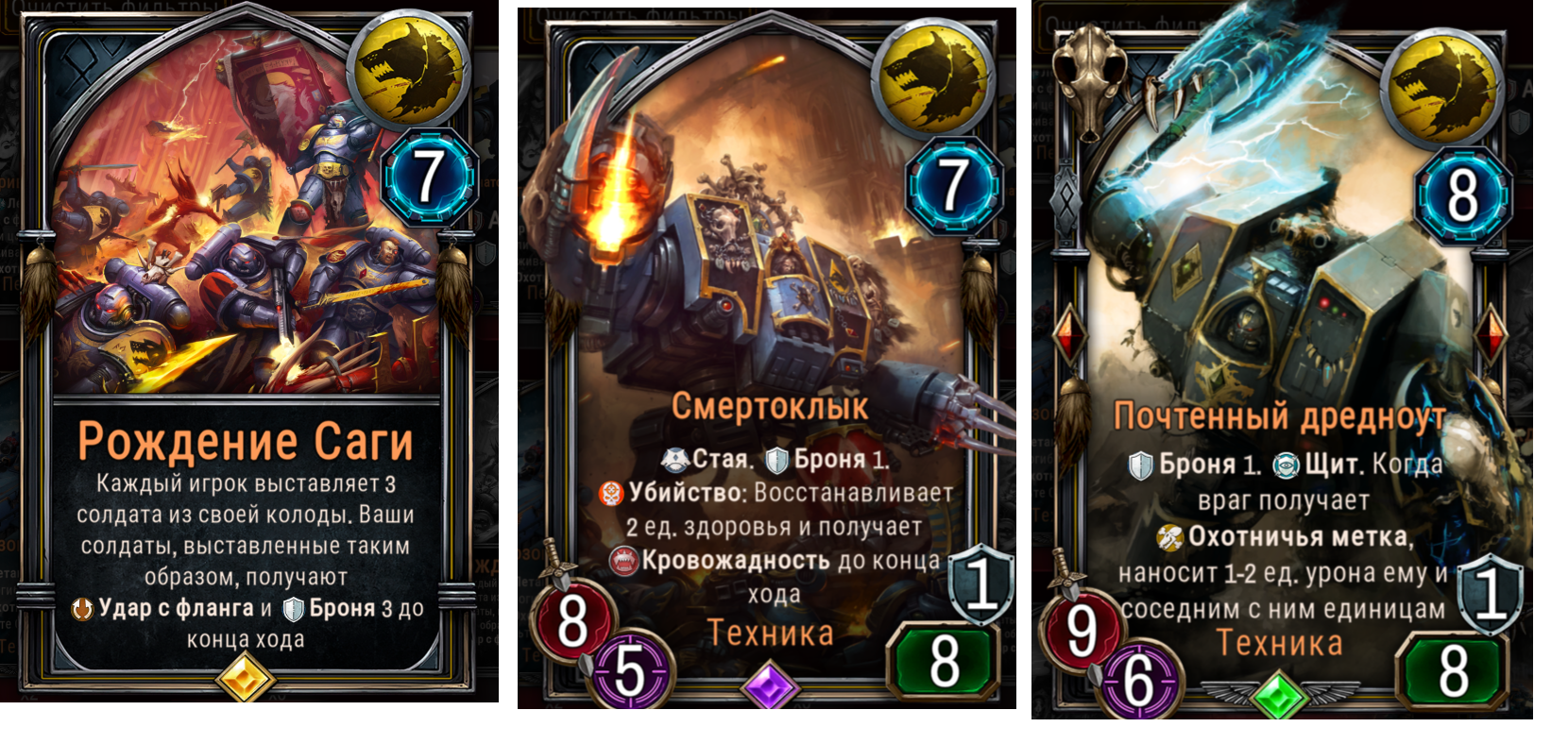 Плюс хорошо играющийся в скирмише рождение саги. Достаешь больших дредов, большие дреды ебут. Можно еще играть дропподы, если достаешь их сагой вместе с почтенным дредом, то почтенный дред пердит трижды, что круто.