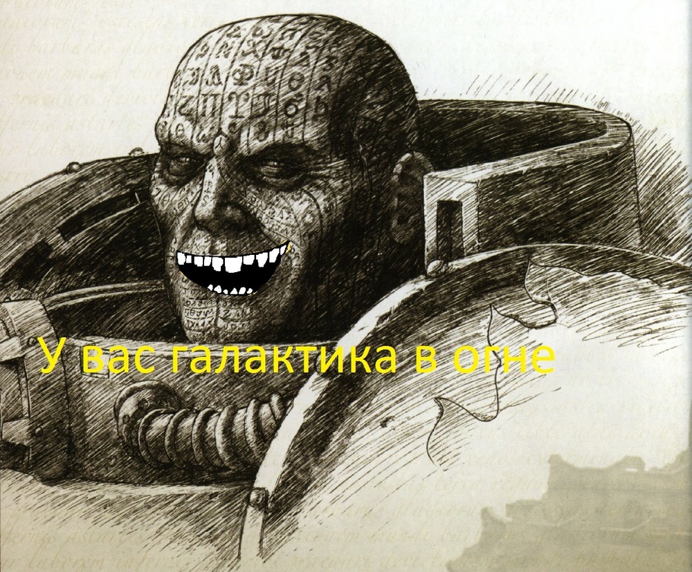 >>91 Кхм. Мне видится так: когда пал Жировсратый, субсектор Вахоебус направил посольство в столицу сектора Мочан, Д. Подкреплений добиться не удалось - защитников сочли зараженными скверной Хаоса и объявили Отступниками, несмотря на то, что они самоотверженно воевали с легионами Великого Нечистого Пик'Абу'шника и ваагхом Двуличного Зеленого Гретчина, грозившими самой столичной системе. Возмущенные, остатки сил Жировсратого сдали позиции и организовали Вахачиус Нихилус в варп-разломе на окраине сектора.