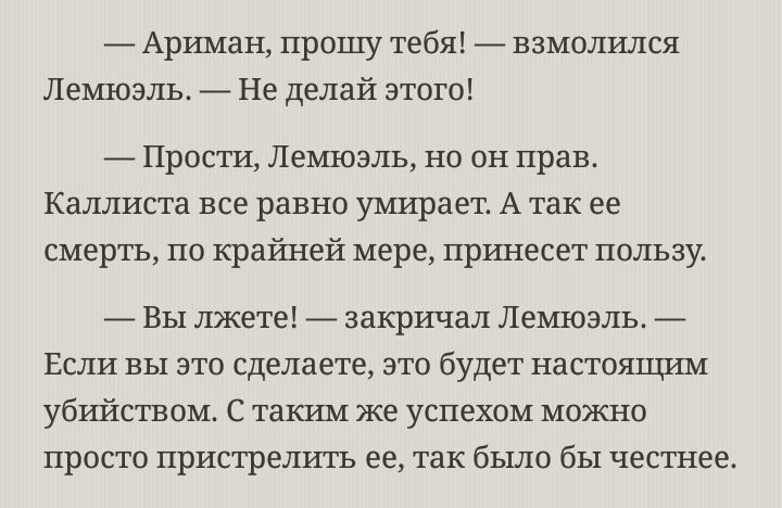 >>1 (OP) — Магнус, Магнус, Алый Король, брат мой, — произнес он. — Я знаю, ты можешь слышать меня. Ты внедрил это орудие, этого несчастного глупца ибн Русте, ты подослал его к нам, чтобы вызнать наши тайны. Но знаешь что? Мы не глупее тебя. Возможно, даже умнее. Мы сразу раскусили твоего шпиона, но не устранили его. Мы продолжали держать его у себя, чтобы следить за тобой, Магнус. Чтобы вызнать твои тайны. Глаз может смотреть наружу, но может и внутрь. Тебе-то следовало знать об этом как никому другому, тебе, смотрящему глубже всех. Волчий Король отвернулся и отступил на пару шагов назад. Взяв в руки скипетр, он сел на трон, после чего положил голову на кулак и вновь взглянул на Хавсера. — Мне нечего от тебя скрывать, Магнус. Нечего. Ты ведь знаешь меня. Мои враги должны знать, кто за ними идет. Тогда их легче уничтожить. Я не люблю скрывать свои силы или то, что я уже иду. Лучше, чтобы мои враги понимали, какая буря на них вскоре обрушится. Волчий Король прервался и сглотнул. Казалось, он подбирает нужные слова. — Я не поэтому говорю с тобой сейчас. Я говорю с тобой в надежде, что ты выслушаешь меня. Я говорю с тобой, как брат с братом. Тому, что грядет, происходить не следует. Ты ведь знаешь, я этого не хочу. Ты ведь знаешь, что мое сердце разрывается от необходимости выступить против тебя, и что душа нашего отца терзается от того, что он превращает своих сынов в противников. Но ты свершил это. Ты довел до этого. Вся вина лежит на тебе. Русс вновь сглотнул. Он опустил взгляд на палубу, хотя его слова все еще предназначались Хавсеру. Скальд же продолжал стоять на месте, словно прирос к полу. — Мы давали тебе не один шанс, Магнус. Мы позволяли тебе добывать знания и проводить исследования. Когда же нас стали одолевать опасения относительно того, куда тебя может завести эта стезя и как она может угрожать всему тому, что нам дорого, мы открыто сказали тебе о своих тревогах. Совет на Никее, он должен был стать моментом примирения. Ты поклялся, что оставишь магию. Ты поклялся! Поклялся, что подчинишься решению отца! Его голос упал до шепота. — Но ты нарушил клятву. Ты показал, что Никейское Решение ничего для тебя не значит. И потому это твоя вина. Тебе следовало понять, что у отца будут связаны руки. У него не останется иного выбора, кроме как послать меня для свершения кары. Русс заглянул Хавсеру в глаза. — Я даю тебе последний шанс. Как брат брату. Я даю тебе драгоценное время, как ни одному другому врагу. Заверши свои дела. Эвакуируй людей из городов. Отключи оборонительные системы. Выведи своих Тысячу Сынов на открытую местность и приготовься к сдаче. Магнус, пожалуйста. На тебя спустили Волков Фенриса. Лишь в твоей власти не допустить кровопролития. Он поднялся с трона. — Пожалуйста, Магнус. Прошу тебя.