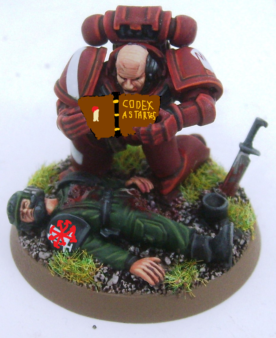 >Томные ангелы, Кровавые ангелы Всегда забавляли все эти названия на самом деле. Вот так какой-нибудь новенький хаосит будет ориентироваться по названиям: -Идут Кровавые Ангелы -О, это наши, да? -Нет, это лоялисты. А вот еще Расчленители -Ну эти точно наши -Нет, лояльный легион. А вот идут Черные храмовники -Н... -Нет, снова лоялисты. А вот Пьющие Души... -Ну это точно... -И снова мимо. А вот Дети Императора -Ну это точно лоялисты -Не, вот эти как раз наши.