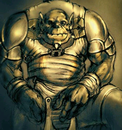 Грогул "Шнырь" - огрин. Сила 2 Ловкость 4 Выносливость 1 Мудрость 1 Интеллект 1 Xаризма 3 Когда-то Грогул обитался с легионерами Гвардии Ворона. Будучи довольно щуплым по меркам огринов, Грогул, тем не менее, был настоящим ловкачом, неплохо играл в карты и однажды даже украл заточку у Кайлана "Седого", авторитетного сержанта 5-й роты. За что и был прозван "шнырём", побрит налысо при помощи полотенца и выгнан на мороз. Лысая башка, впрочем, только добавила Грогулу харизмы. Кое-как подоклемавшись, он вскоре уже работал огрином-по-найму на любого, кто хорошо заплатит. Способности: Шнырь. Умеет заговаривать собеседника и ослабляет бдительность. Возможно латентный псайкер. Карманная кража. Мало кто ожидает встретить огрина-карманника. И уж совсем никто ожидает успешного огрина-карманника. Но Грогул учился у лучших!