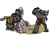 >>14211 Посвящение в десантники Хаоса включало в себя несколько усмиряющих церемоний. Глотание экскрементов считалось самым невинным. Встав с постели, поглотив экскременты и тщательно обдумав предстоящий обряд, Хренд начинал долгий и, как он полагал, опасный забег по треду.