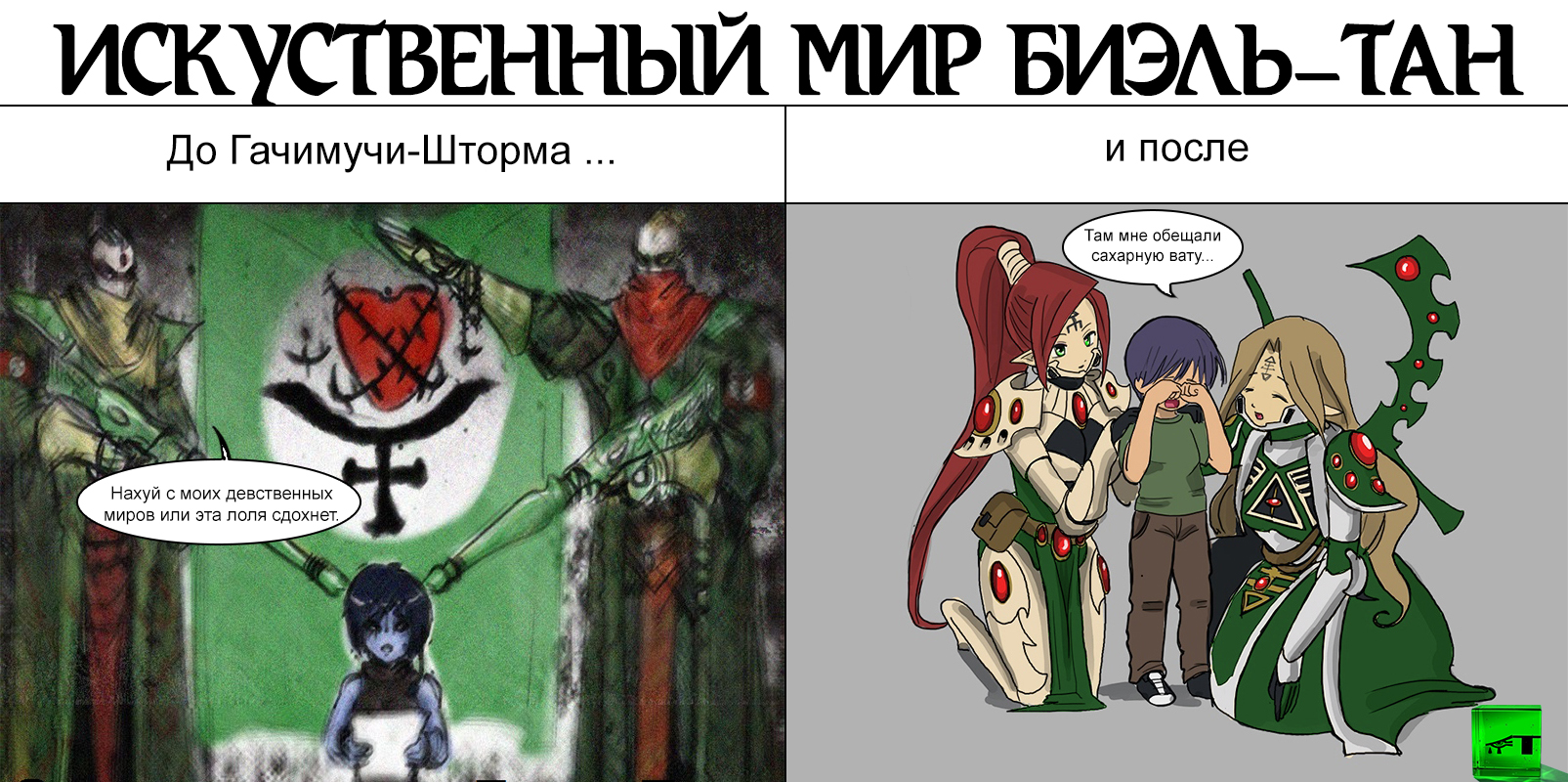 >>2995 >Ну тут как. Человек/Астартес осознанно что-то делает и принимает это. Когда десантник вне боя в свои 15 минут личного времени читает книжку и когда он откручивает головы еретикам это один и тот же десантник, одна личность Он живое оружие, начнем с этого. Оружие создано убивать. >А когда эльдар Сахариэль пишет картину - это один Сахариэль, когда чистит сортиры - другой, когда режет монкей в лесу в боевой маске - третий. Потому что это маневры уже на уровне личности, хотя для ушастых маневрировать привычно всю жизнь уже. >Я-то знаю.А эльдары -нет. Пофиксил. Т.е ВЕЛИКАЯ ВСЕМОГУЩАЯ РАСА ВЕЛИКИХ ПРОВИДЦЕВ И ВОЗВРАЩАТОРОВ БЫЛОГО ВЕЛИЧИЯ опять ничего не хочет знать, не может в настоящее дальновидение и вообще они лучше знают, потому что так сказал фарсир, который, сука блять, со слов даже самого УЛьтрана должен ВЫБРАТЬ одно из ВОЗМОЖНЫХ вариантов развития событий, которое еще и ИЗМЕНИТЬСЯ может.