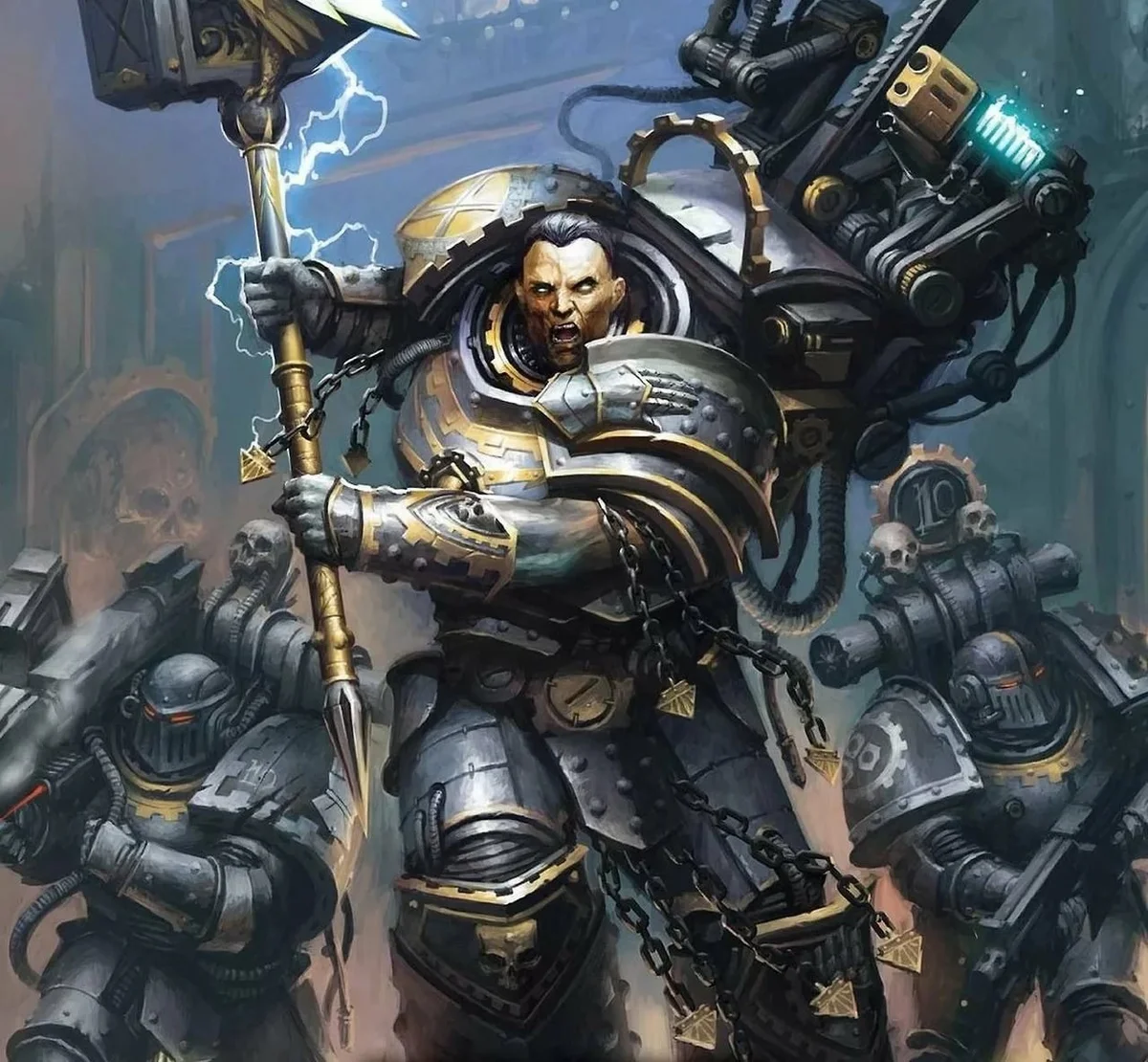 О духи машинные, Паутину держащие, О цепи священные, ведущие ток, Адептов Омнисии когитаторы От зла скрап-кодов защитите О духи машинные, что в нашем оружии, Что наши щитболтеры верно хранят. Направьте удар и разите без промаха Лягух нечестивых, что бросились в тред!