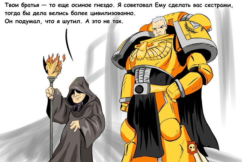>И теперь обречен сражаться с зеркалом, в котором отражается его кривая рожа. А если бы миндальничал и всем жопу лизали - и того бы не было, всех бы орки или другие, истребленные в ВКП, ксеносы пожрали, ну или была бы та же война, только не в формате Империум против всех, а тысячи фракций человечества друг против друга, против ксеносов и против демонов.