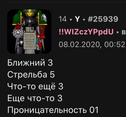 >>29128 А что будет если лояльный десантник съест культиста? а я теперь понял как Зумистрион стал таким, он когда-то съел сланешистского культиста или даже чемпиона
