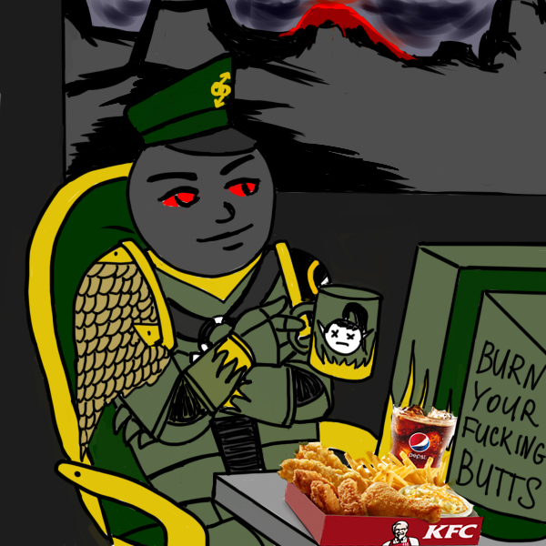 >>34 (OP) Возможно путаю но вроде где-то видел пикчу с дедом-нурглитом который такой вот сижу в варп смотрю. Плохо что ль? Хорошо.на того деда из засраной квартиры. Была ли такая пикча?