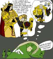 >Дорн сосредоточенно строил крепость из спичек, высунув кончик языка от усердия. >Сигиллит лениво цедил армянское полусладкое вино, развалившись в кресле. >Император спал, уронив голову на руки. Фигурка для регицида врезалась в щеку Повелителя Человечества. >Вальдор задумчиво смотрел в окно. Интересно, подумалось ему, Отец действительно был охранником магазина несколько тысяч лет назад, во времена ТЭТ? Или это очередная бессовестная ложь?