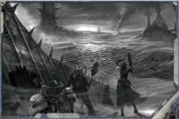 Мужчина не отреагировал, продолжив смотреть на костёр. Тот почти потух, превратившись в тлеющие угли. Свечение, удерживаемое каждой расщепленной веткой, постепенно тускнеет от жёлтого до красного, пока он наблюдает за ним. На противоположной стороне пламени стоит незнакомец, высокий и широкоплечий, с лицом, сотканным из образов королей и завоевателей минувших эпох. Он был в чёрном, как и сидевший у костра, но его одежда была тяжёлой и величественной там, где плащ и одежда сидевшего были изорваны и изношены. На плечи стоявшего была накинута толстая шкура, и голова зверя свисала с одного из них. На пальцах в перчатках блестели кольца, в каждом был драгоценный камень, в котором отражался тусклый свет горевших дров: аметист, рубин, изумруд, сапфир.