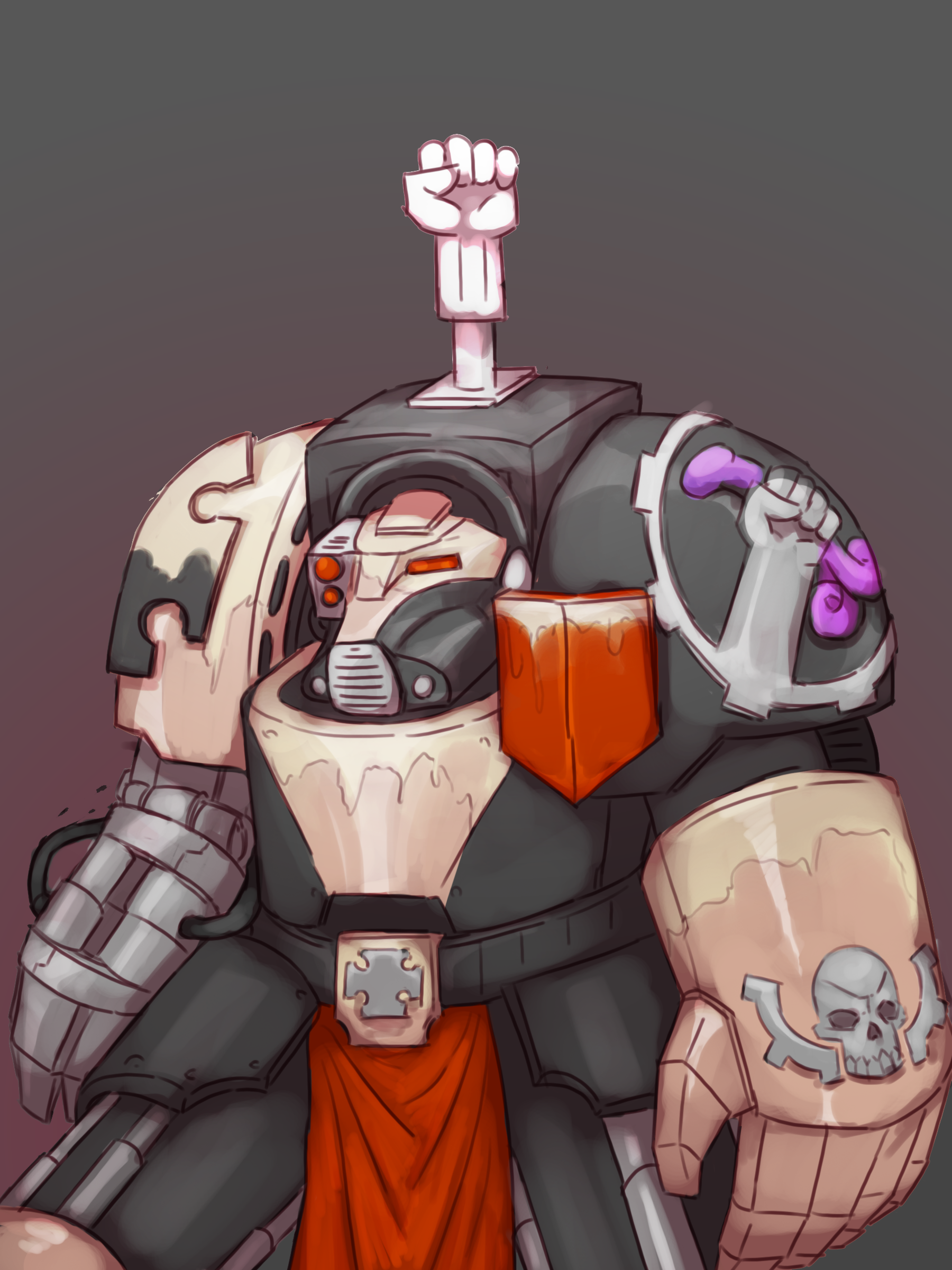 А всех вместе водила за нос ассассинка Ванус, один из "свободных инфоцитов", которую преследовала Альфа. Она умудрилась слить Альфе нужные координаты и Альфа пошла на перехват колонны Хренда, дредноута направленного Пертом выкапывать артефакт. Дредноут и компания напоролись на Альфу и вынесли ее, но за ними же следовал еще упрямый танкист из лоялистов, которого все та же ассассинка навела на цель. Группу Хренда разнесли, сам он поглядел на варп-хуйню, на то, во что превратит Перт легион, если получит ее, и предпочел самоуничтожиться, чтобы только обломать примарха. Так что ХРЕНД НЕ ПРЕДАВАЛ.