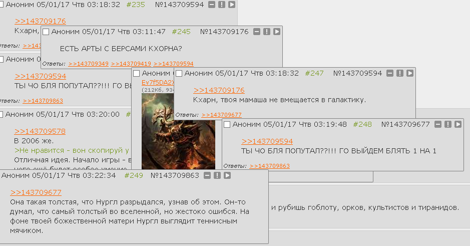 >Короче, слушайте меня сюда: если хоть раз кто-нибудь ещё напишет про Аргел Тала, или Киреночку, или исковеркает имена лучших примархов, я вас всех за это башки оторву, понятно!? Я вам всем побьюн!