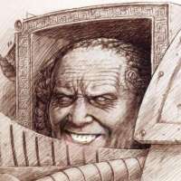 "Казалось, исполинскую фигуру примарха высекли из того же камня, что и горные хребты. Над его широкими наплечниками выступала обмотанная проволокой рукоять колоссального широколезвийного меча, достойного древних богов войны. Истории о том, как Пертурабо одним ударом сражал целые армии, вдруг показались Атхарве не такими уж недостоверными.