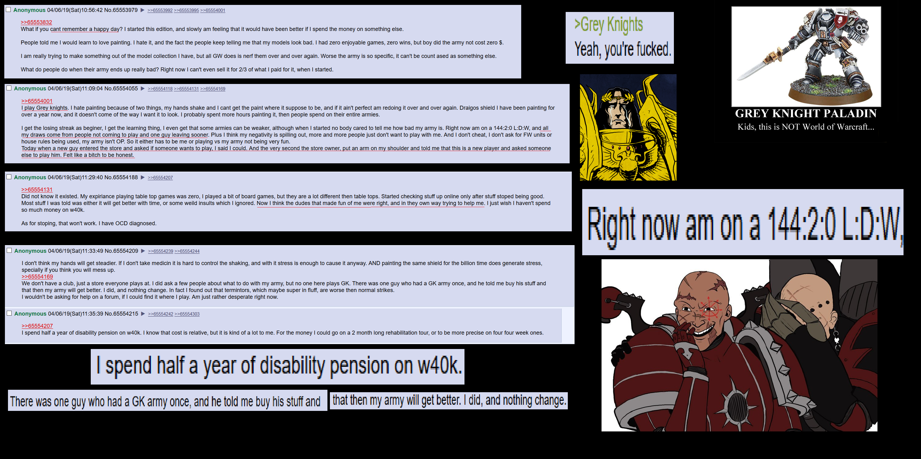 >>62107 Так было надо. И сестрички - имба. >>62108 А про Повелителей перемен что скажешь? Там же каждый птиц - ояебу псайкер, особо хтоничные Мефистона склюют и не подавятся.