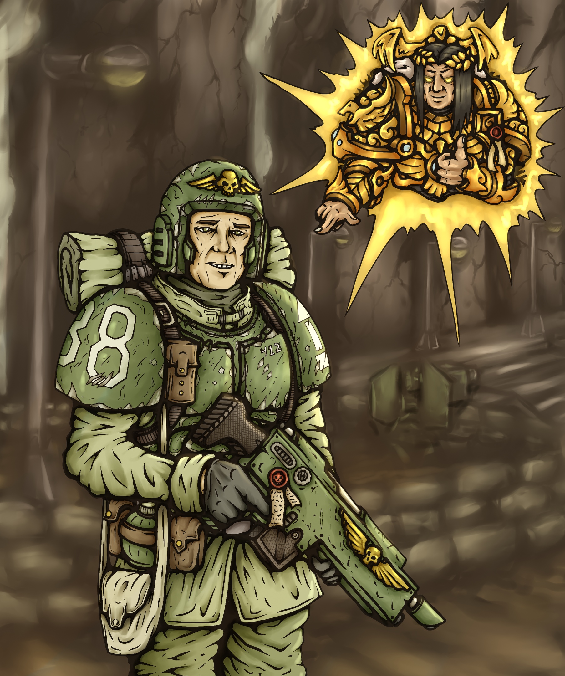 >Another instructor, addressing Gunthar’s whole platoon, told how at the age of twelve he had been given a lasgun and sent into a rad-zone to hunt down mutants, a mission from which a third of his squad had not returned and the least of those men had been more able, more dedicated to his cause, than any of these weak, apathetic wastes of genetic material that currently cowered before him.