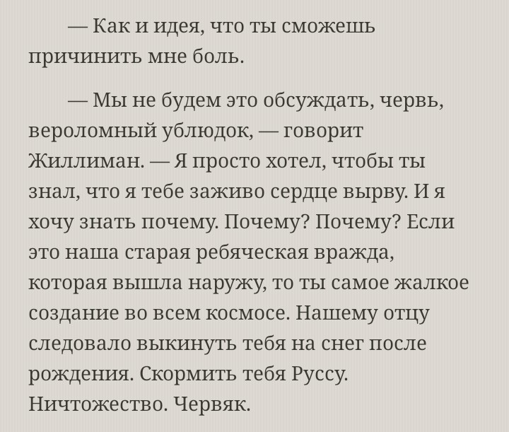 >>73766 У Макнилла он даже мне, злостному дорноебу, симпатичен. Если автор может заставить сопереживать персонажу из вражеского легиона - это хороший автор. А потом все покатилось в какую-то невразумительную хуйню. >>73765 >Где они все теперь, кого судили по результатам, закрывая глаза на методы? >А все ТАМ. Так и есть. Если достигать целей слишком грязными методами без протектората от лично САМОГО, готового вмешаться напрямую и вытащить тебя из пиздеца за шиворот - рано или поздно доиграешься.